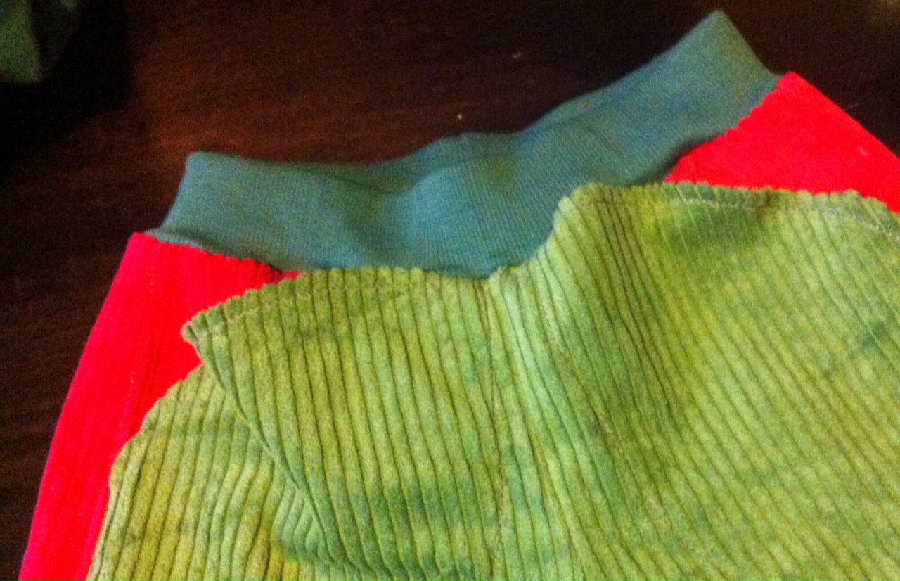 Auch wenn der Sommer kommt, hab ich mich dennoch als Geschenk für meine liebe Nichte für eine schicke Buddelbüx aus moosgrünem und feuerwehrrotem Breitcord entschieden. Die Kniepatches sowie der Po-Besatz wurden mit wasserdichtem Cordura verstärkt. Die perfekte Hose also für schmuddeliges Herbstwetter (so wie heute da draußen). Ich hoffe, sie wird der Kleinen gefallen (und der Mama ;)).