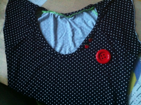 So, das Kleidchen war nun fertig. Aber irgendwie auch nicht. Es ist hübsch, aber noch etwas fad. Aber nun war es schon spät und ich irgendwie am Ende der Kreativität, also lass ich es erstmal ein wenig auf mich wirken. Vielleich´t mache ich morgen noch einen Knopf oder eine Jerseynudelschleife oder sogar einen Gürtel ran? Mal schauen, (Trage-)Fotos zeige ich euch dann natürlich!