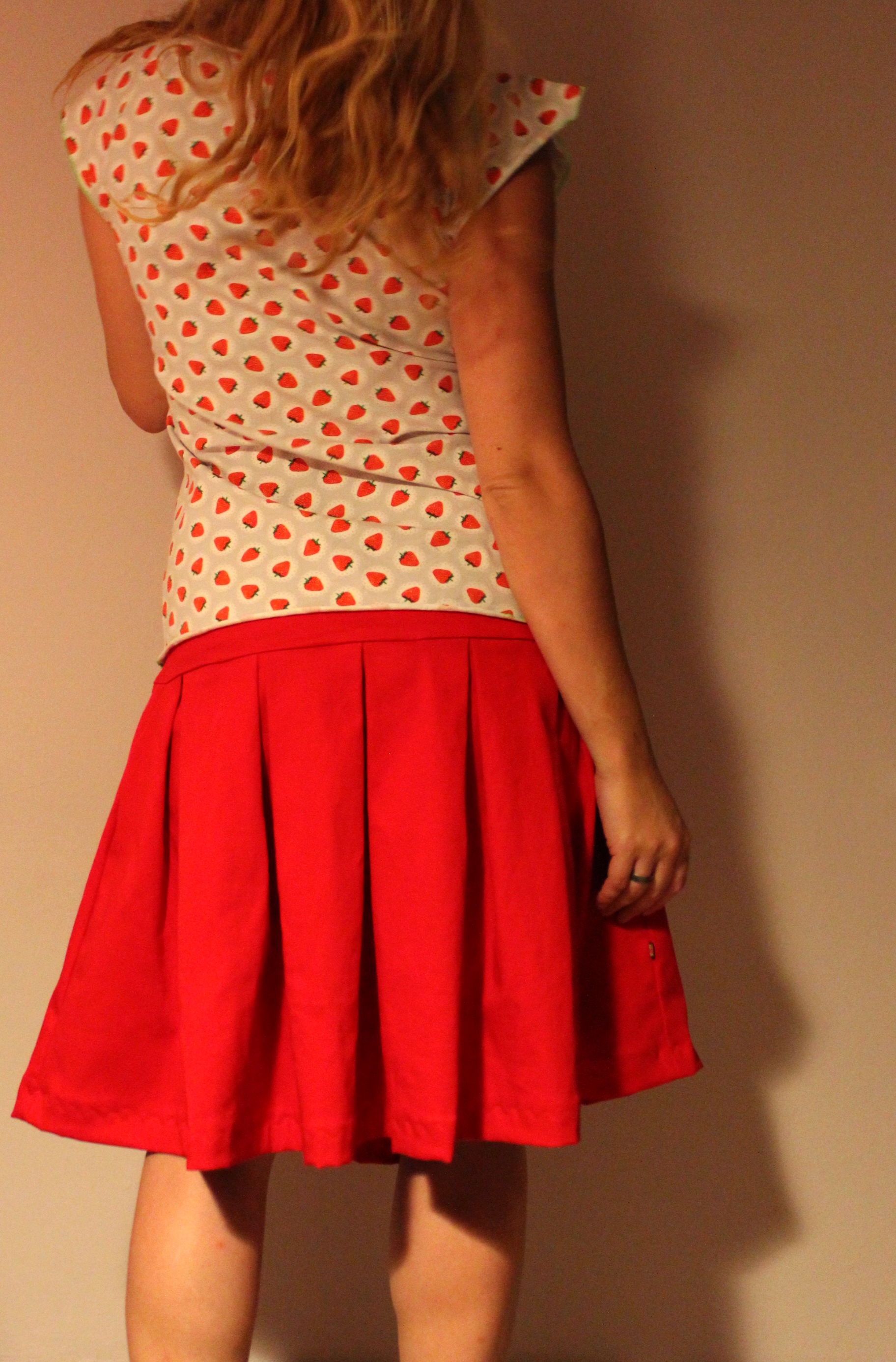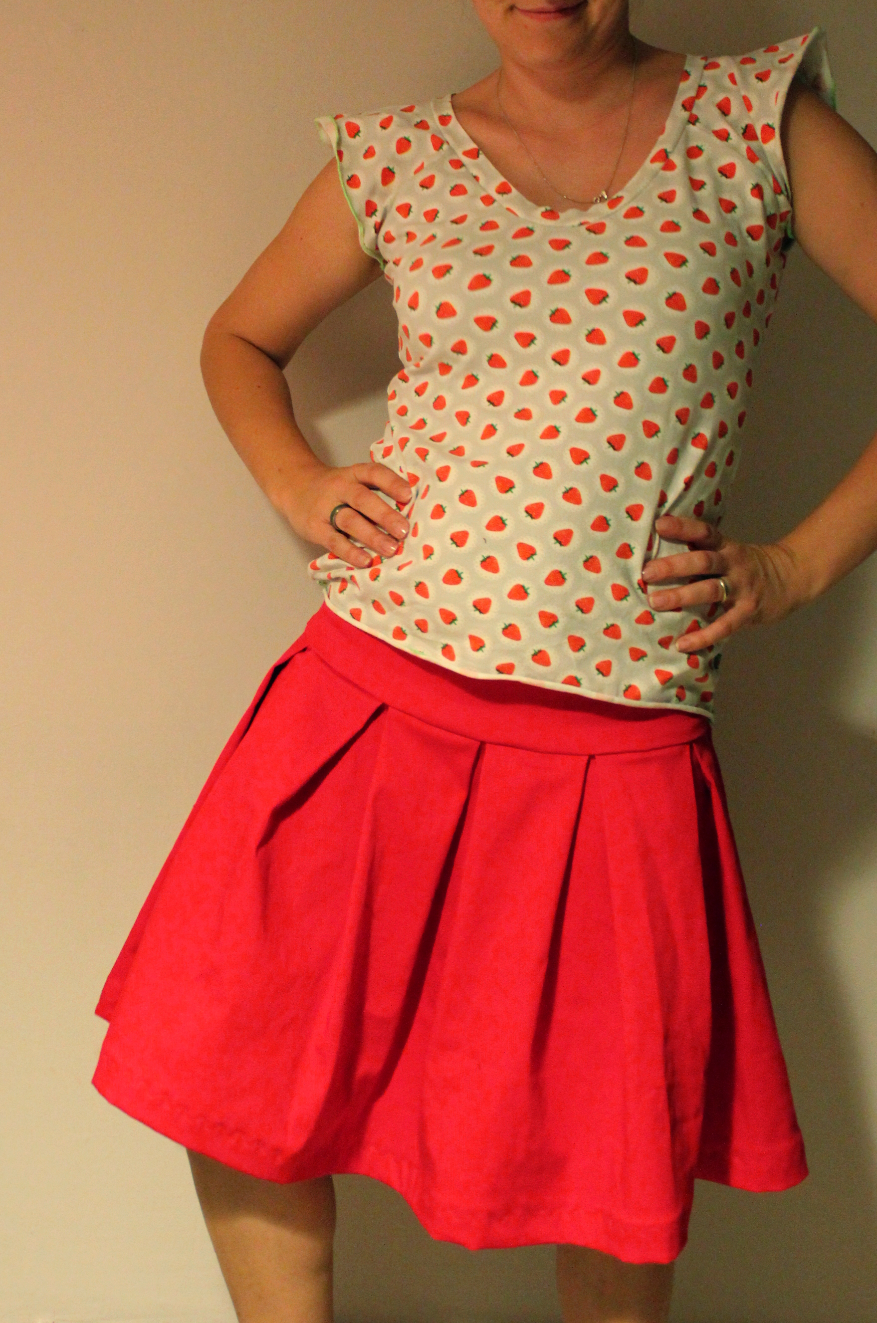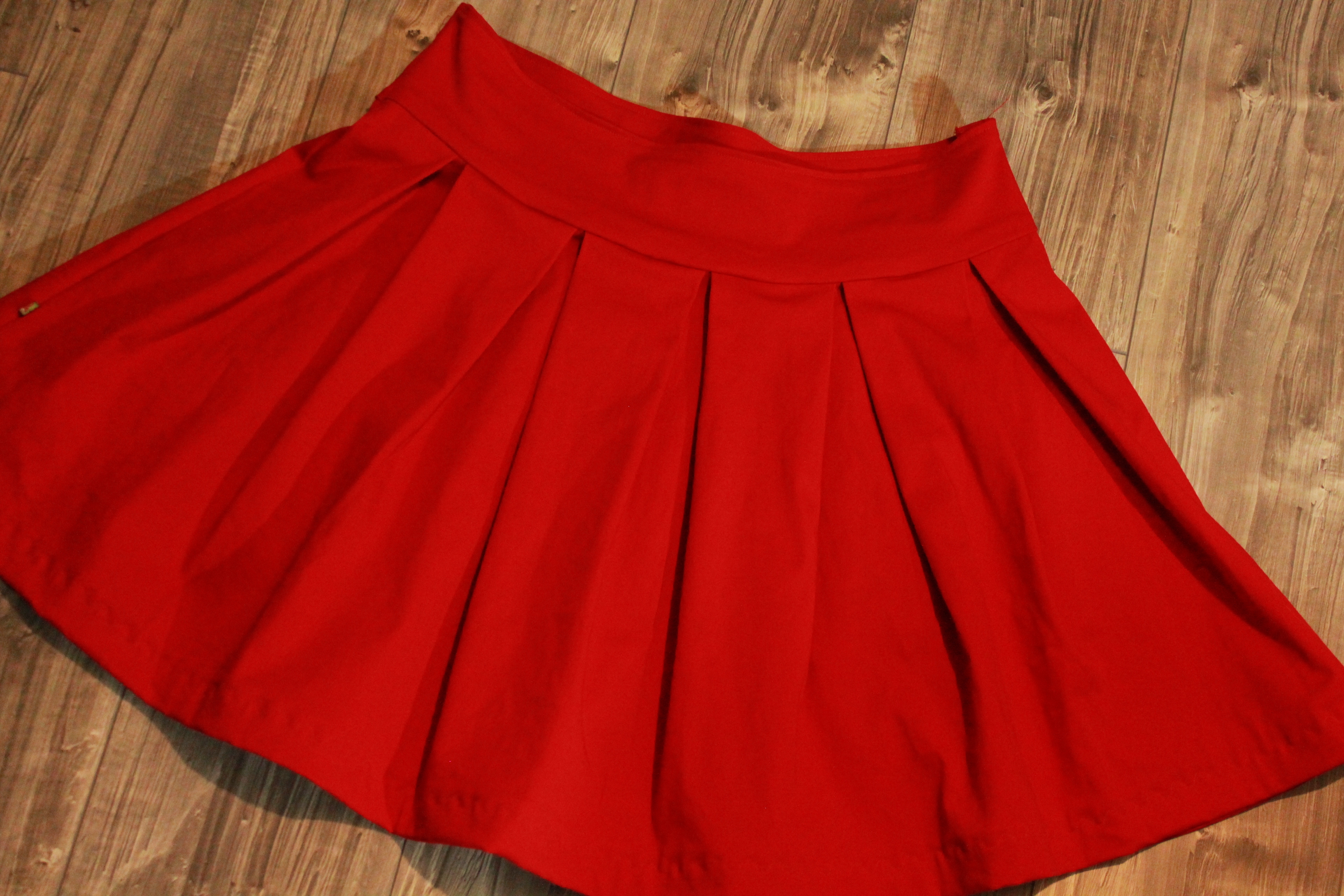 Ich habe fertig! und ich habe ihn gewonnen, den Kampf gegen bzw. mit den Falten. Herausgekommen ist ein wunderschöner (für mich ganz untypisch) unifarbener roter Rock aus toll-fallendem Baumwollstretch ganz ohne irgendwelchen Schnickschnack.