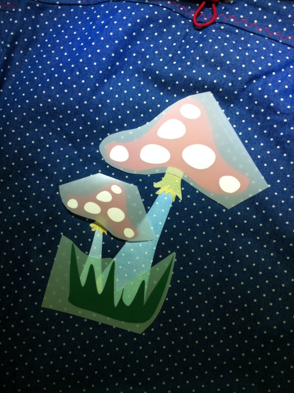 Ich bin total im Plotter-Fieber, und dabei hab ich selbst (noch) gar keinen! Die Möglichkeiten scheinen unbegrenzt und man kann seiner Phantasie und Kreativität freien Lauf lassen. Vorgestern kam mir die Idee, als ich bei Frau Zwergenschön quer gelesen habe, ich möchte Pilze auf meine blaue MaLova. Bei ihr gibt es nämlich wunderschöne neue Stickdateien und Plottervorlagen. Gestern hab ich die Idee gleich umgesetzt, Pilze selber gemalt (selbst ist die Frau!) und mir plotten lassen und gleich noch aufgebügelt.