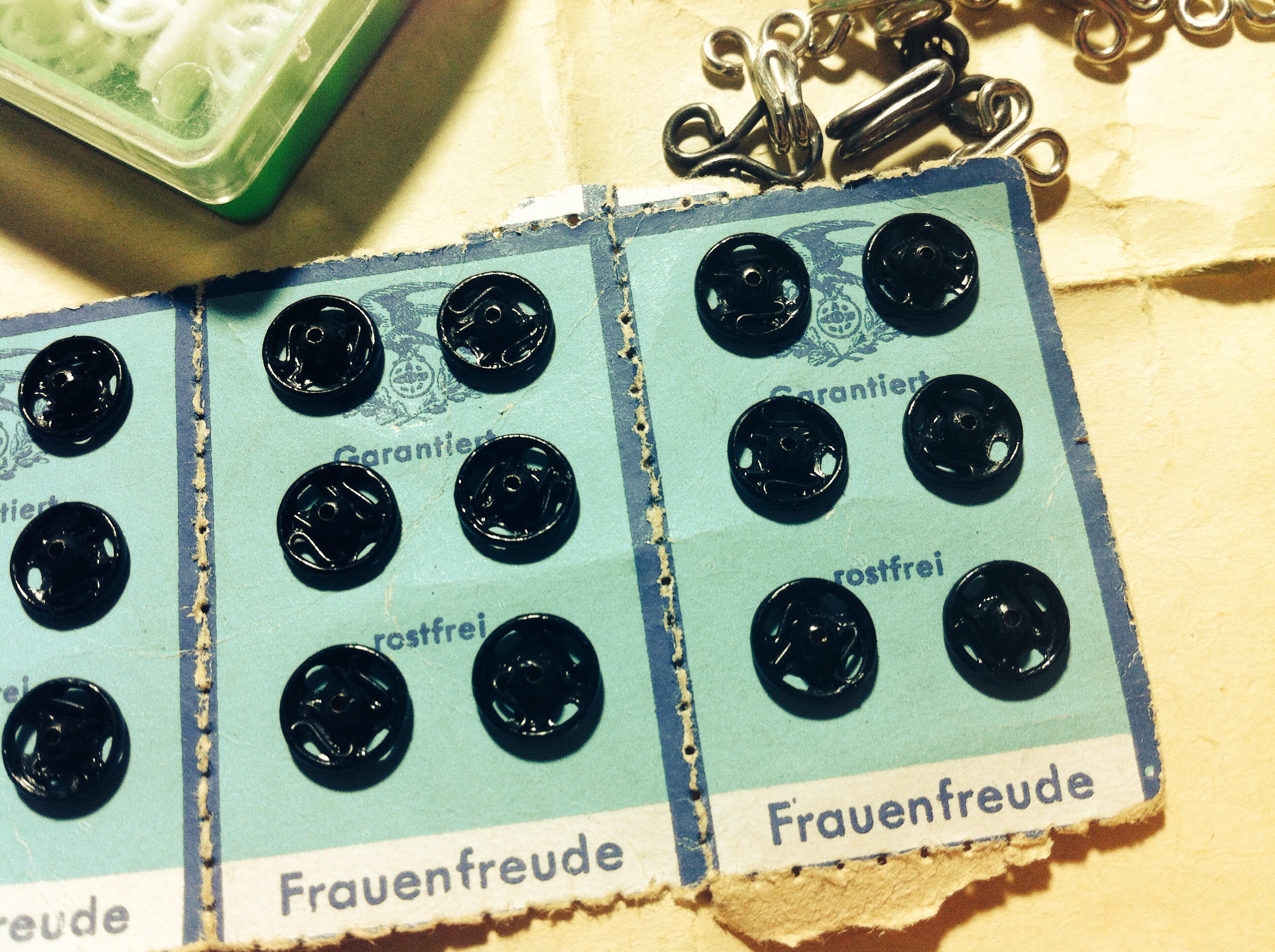 Nachbars Oma (Nicht zu verwechseln mit Nachbars Lumpi 😸) hat mir eine „Schatzkiste“ aus früheren Nähzeiten überlassen.