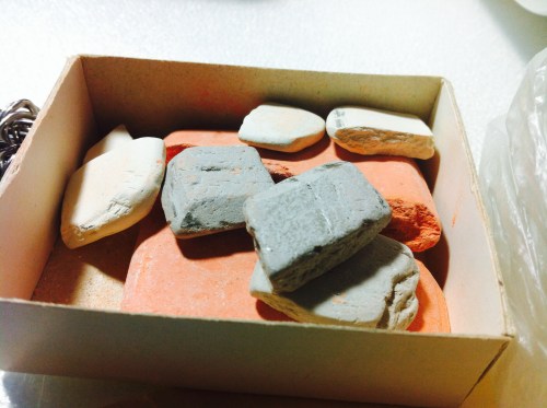 In einer kleinen Pappschachtel fand ich noch gut erhaltene Schneiderkreide. Damit hat die alte Dame also früher in ihrer Schneiderei auf feinen Anzugstoffen oder zarten Damen-Seiden Schnittmuster aufgezeichnet.
