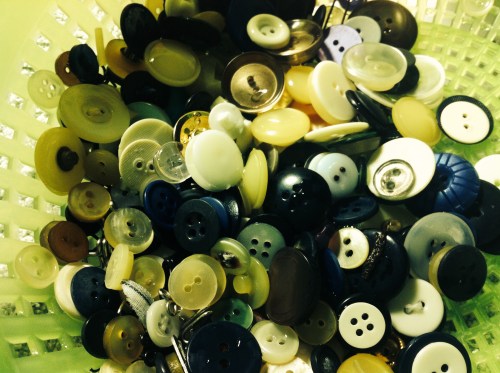 Beim Öffnen strömte mir ein „Duft“ von langen Dachbodenzeiten entgegen und ich war zunächst sehr skeptisch, ob ich da weiter drin rum wühlen mag. Beim Öffnen der mit Blumen verzierten Nivea-Dose kam eine Menge von Kleidung abgetrennter (!) Knöpfe zum Vorschein. Die hatten also alle schon ein mal eine Bestimmung, haben Damenmäntel, Kinderhosen und Herrenhemden verziert und zusammengehalten. Weil die wirklich zu schade zum Wegwerfen sind, kamen die erstmal unter die Dusche.