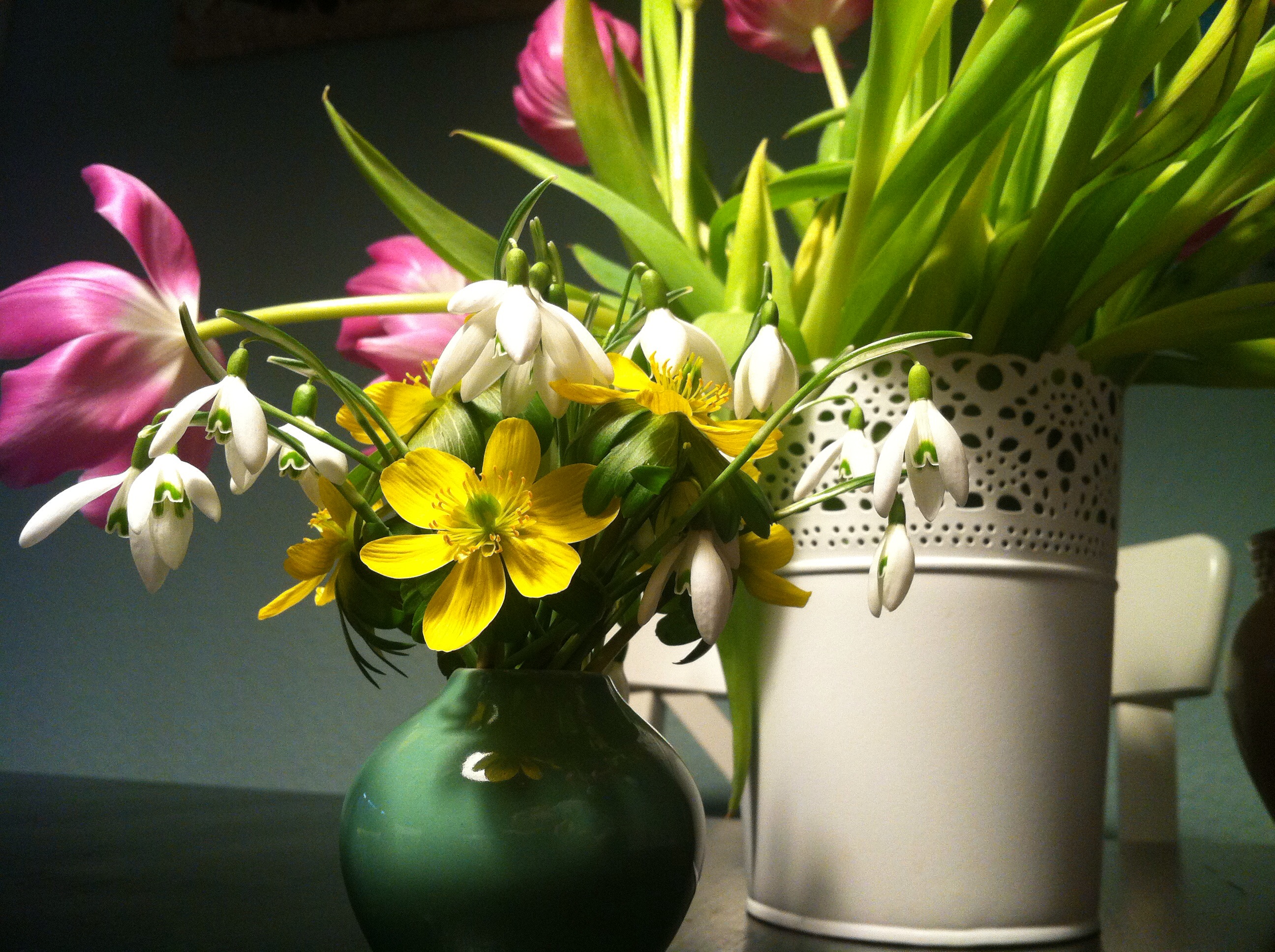 Zwischendrin kam mir noch mein Frühlings-Blumen-Küchentisch unter die Linse, das Handy kann auch gut Fotos, manchmal. Das konnte ich euch nicht vorenthalten.