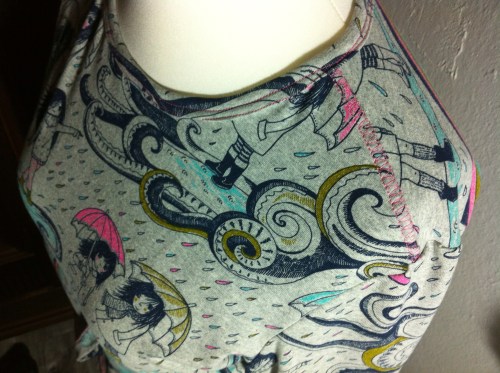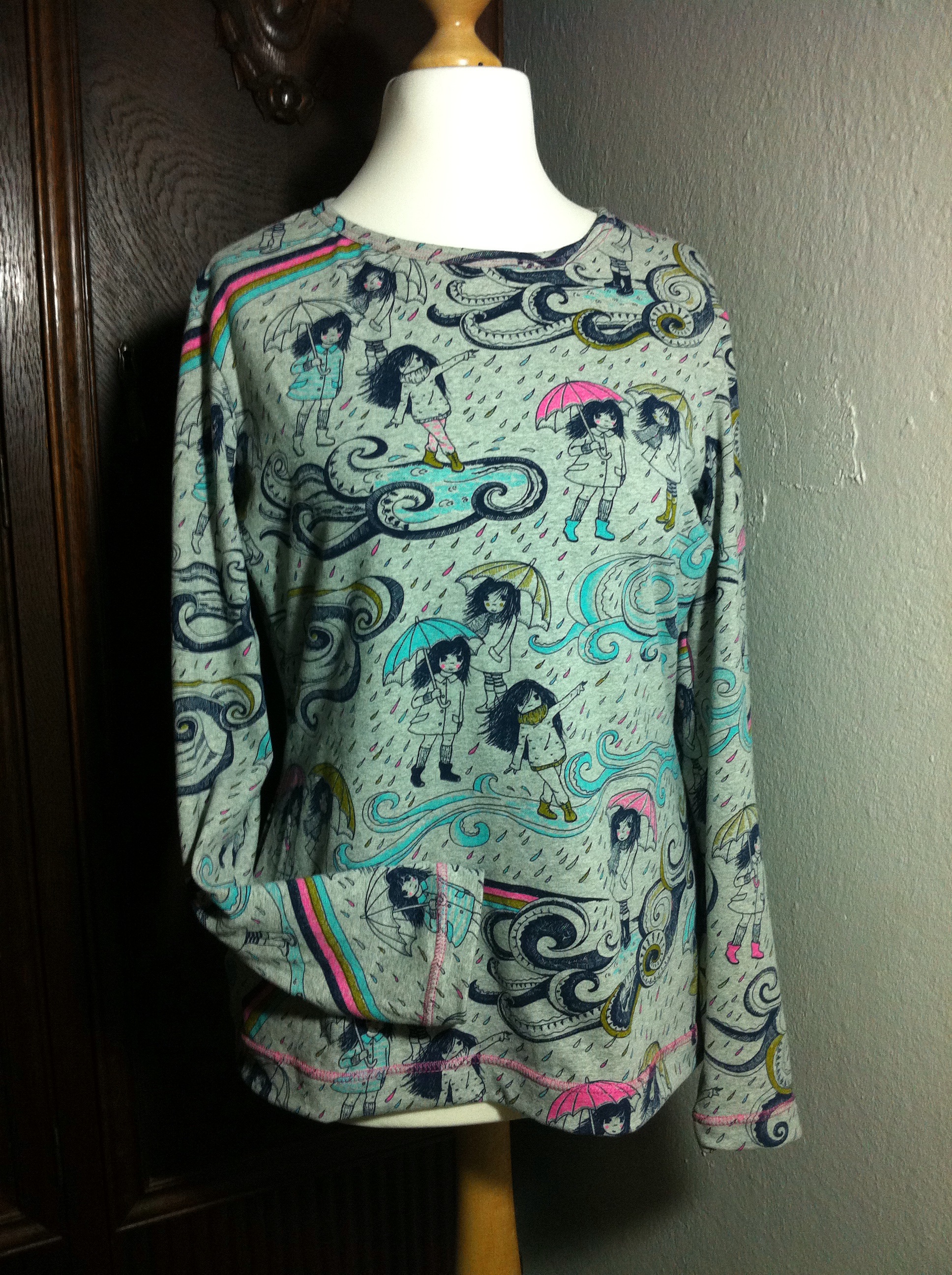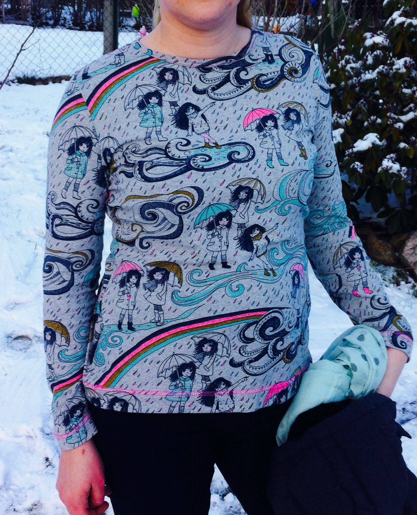 Meine Odysee mit dem letzte Lillestoff „Mangagirls“ hatte mich diesmal gleich dazu bewegt, das „Herbststurm-Stöffchen“ gleich zu bestellen. Und dann gab es ihn plötzlich an alle Ecken und Enden. Wie man’s macht… Nun hat er endlich seinen Winterschlaf beendet im Stoffschrank und ich habe mich entschieden, daraus ein „Lady-Rockers-Shirt“ zu nähen.
