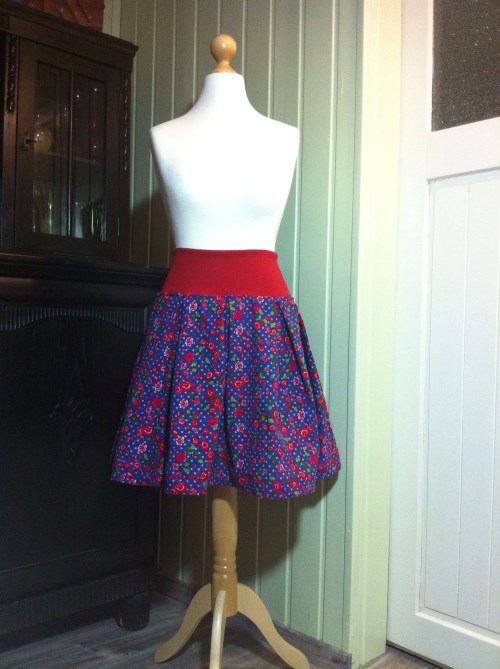 Da scheue ich auch nicht davor zurück, sage und schreibe 50 Minuten am Stück (ohne Unterbrechung) nur den Saum abzusteppen. Was sein muss, muss sein. Zum Retrorock gehört eine Retro-Schnörkelnaht. 😉