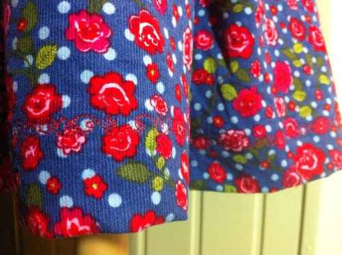 Es gibt Stoffe, die sind nicht nur schön, die sind einfach ICH. Wenn man sie sieht, weiß man einfach, den muss man haben und daraus wird ein Rock oder eine Jacke oder eine Tasche. Genauso ging es mit mit diesem blauen Blumencord.