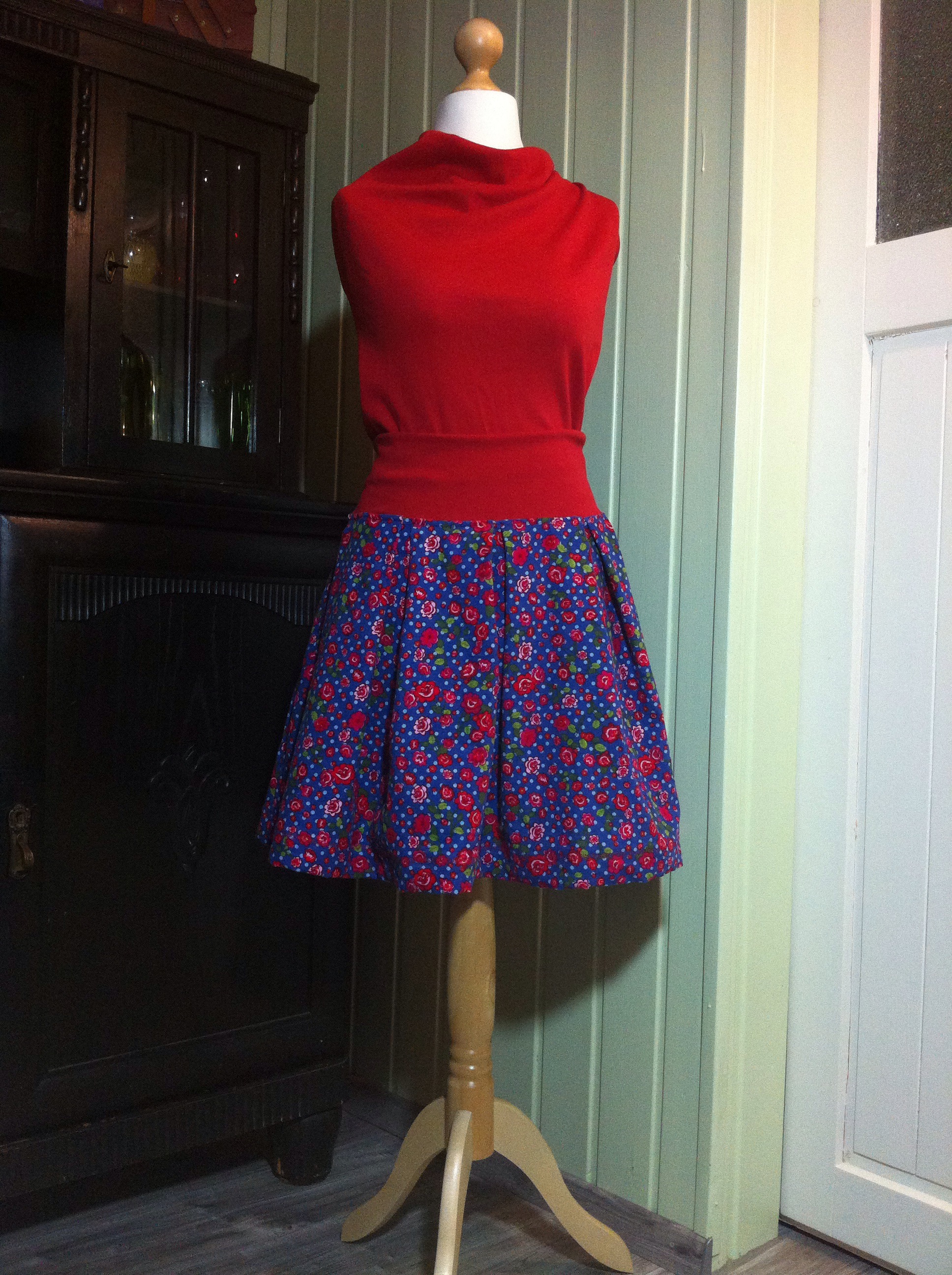 Da scheue ich auch nicht davor zurück, sage und schreibe 50 Minuten am Stück (ohne Unterbrechung) nur den Saum abzusteppen. Was sein muss, muss sein. Zum Retrorock gehört eine Retro-Schnörkelnaht. 😉