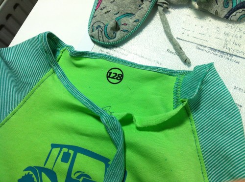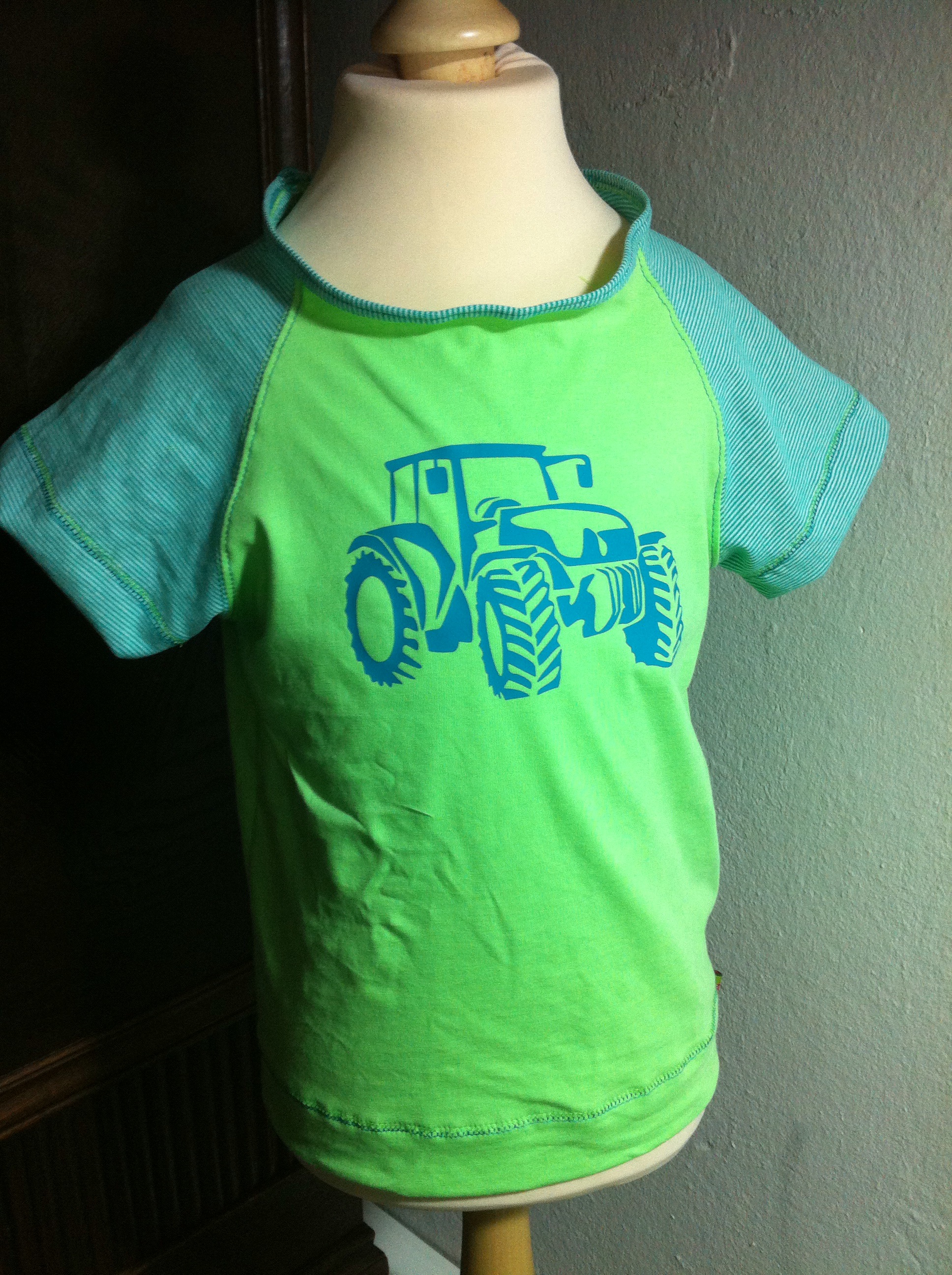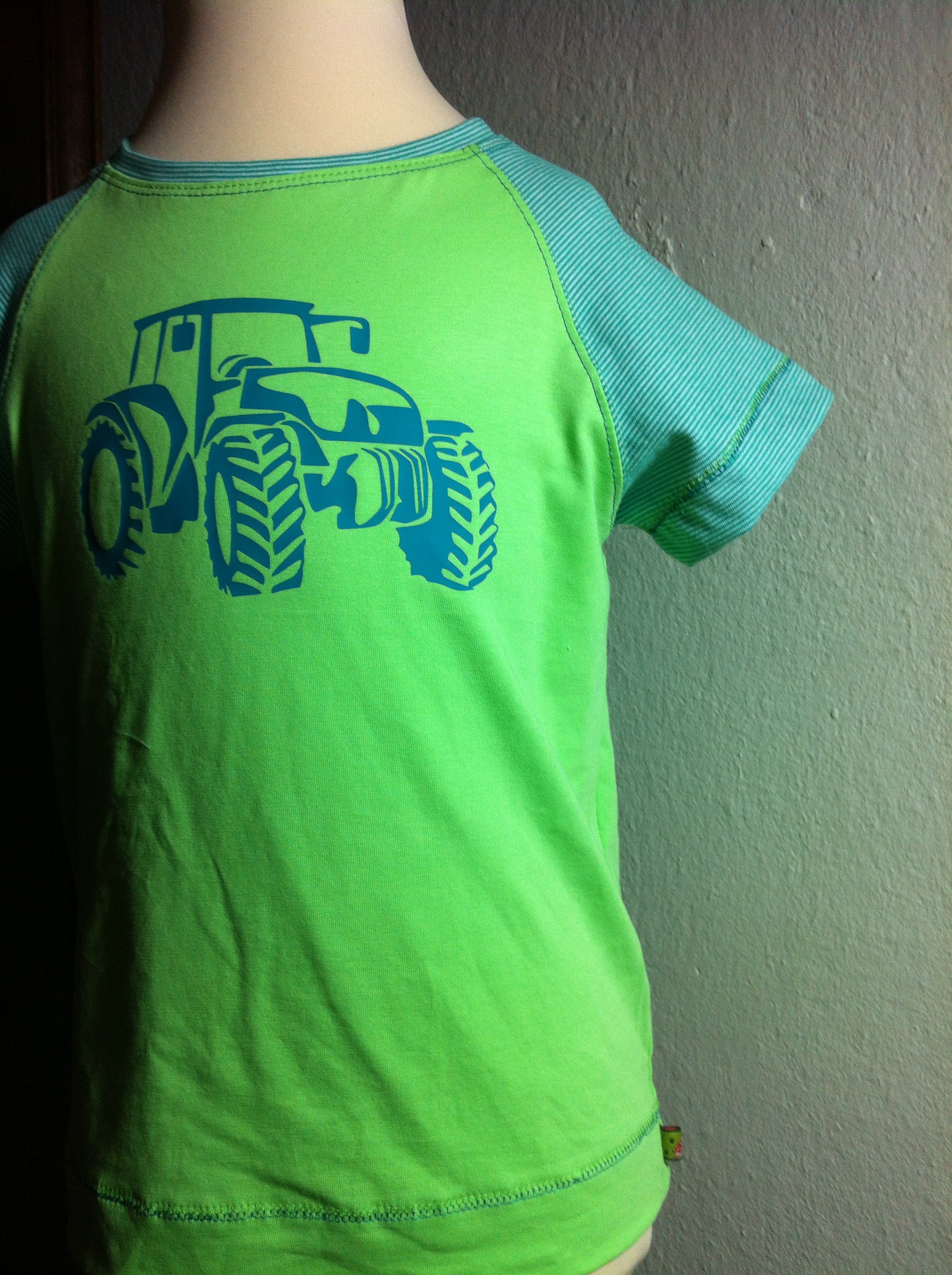 Fertig ist das Shirt. (Schnitt: Vitus. Stoffe: Sanetta Jersey, Plotdatei: Traktor).