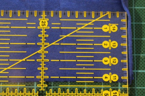 Die ersten Versuche mit dem Bandeinfasser waren ja etwas holprig. Von der lieben Claudia bekam ich erstmal den Tipp, das Band für den Bandeinfasser ruhig vierlagig zu schneiden, d.h. den Stoff zweimal zu falten. Und siehe da, mit Lineal und Rollschneider ging das erstaunlich gut und sogar schnell.