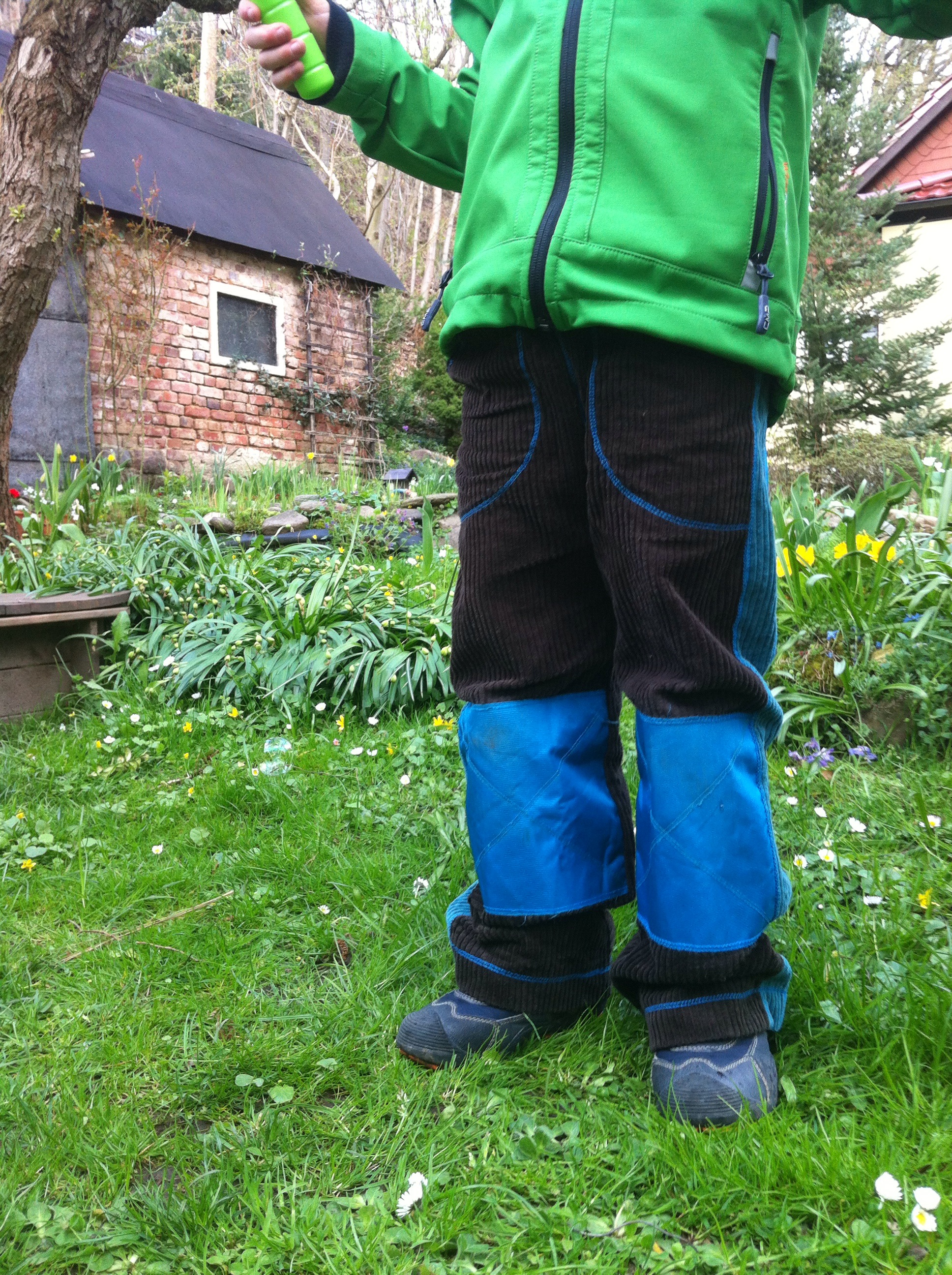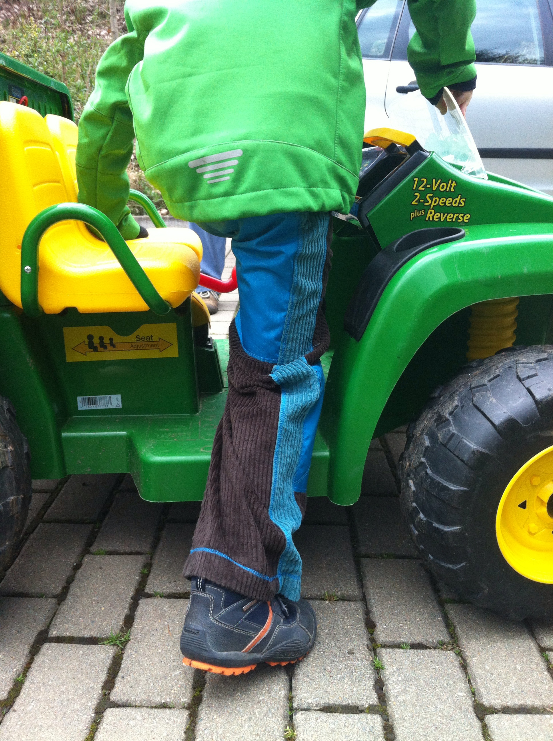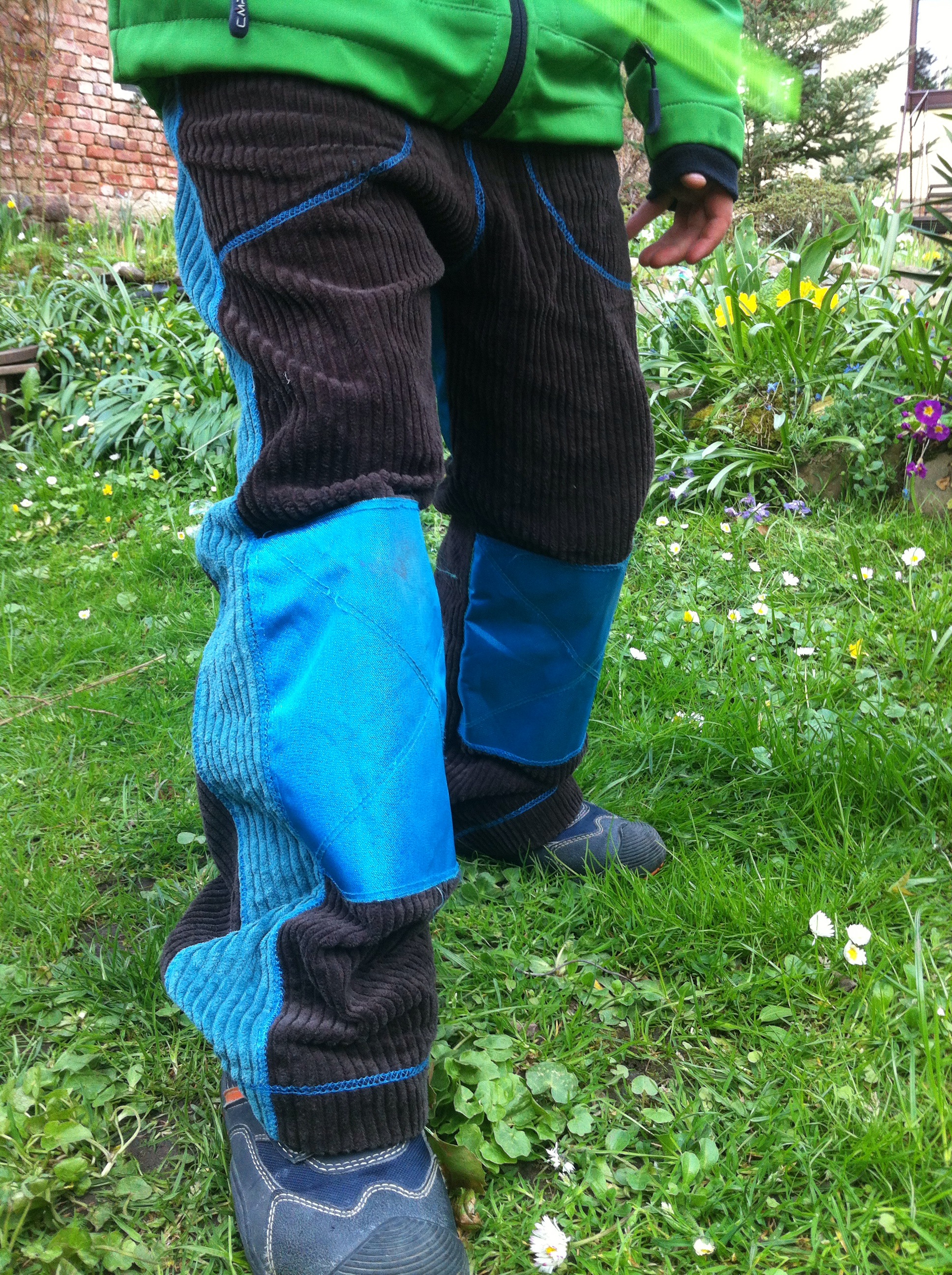 Aktuell ist sie noch etwas zu lang, die Kniepatches sind dadurch ein wenig zu weit unten. Aber bei dem Wachstum, was der Hase da an den Tag legt, bin ich sicher, dass sie ganz schnell perfekt passen wird.