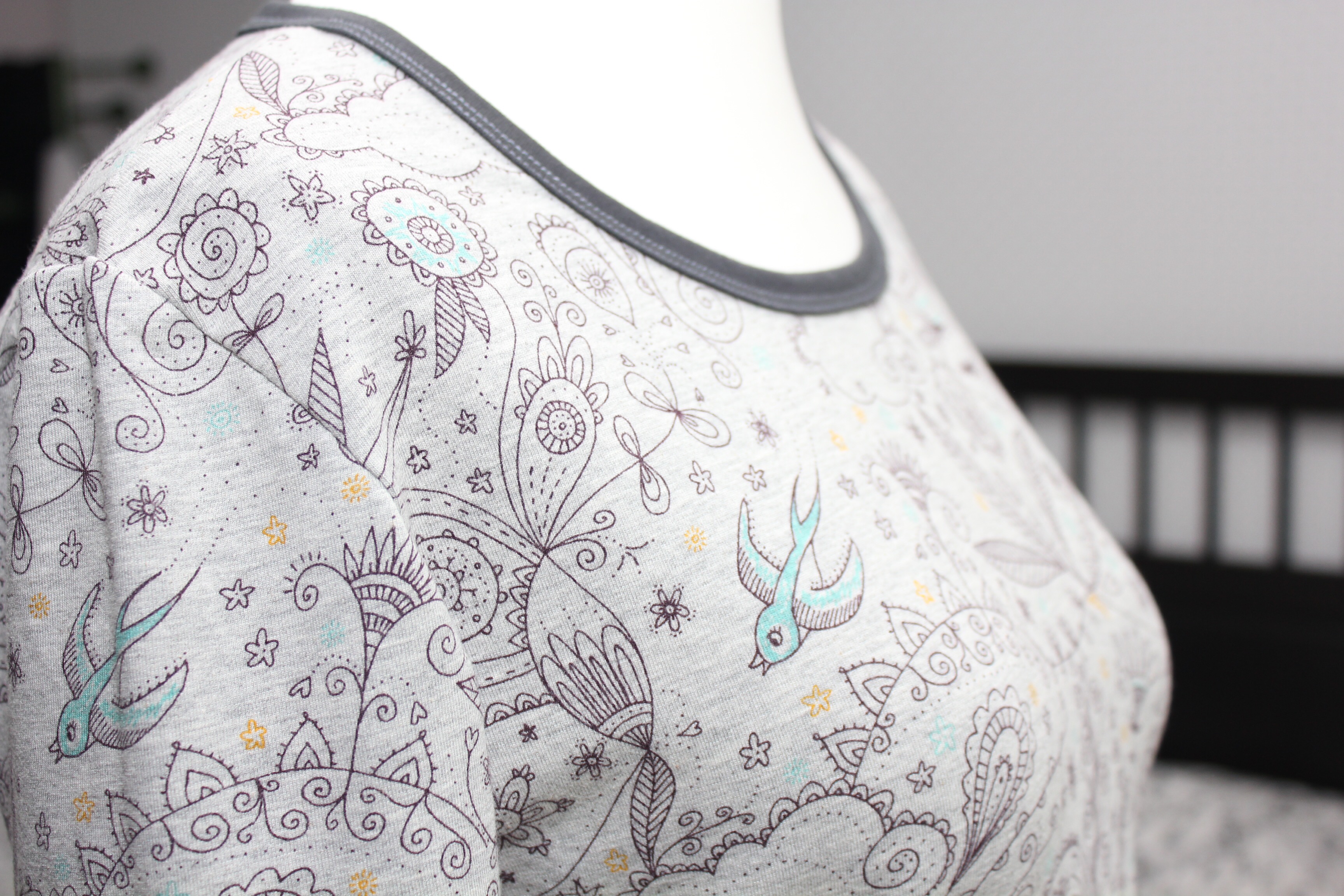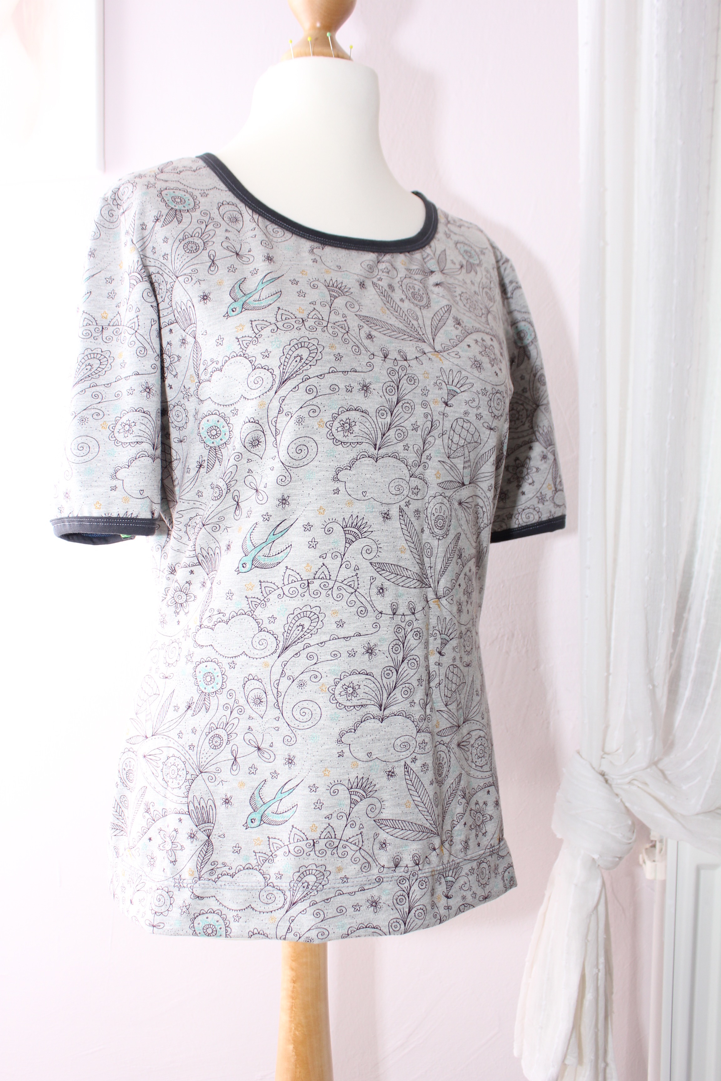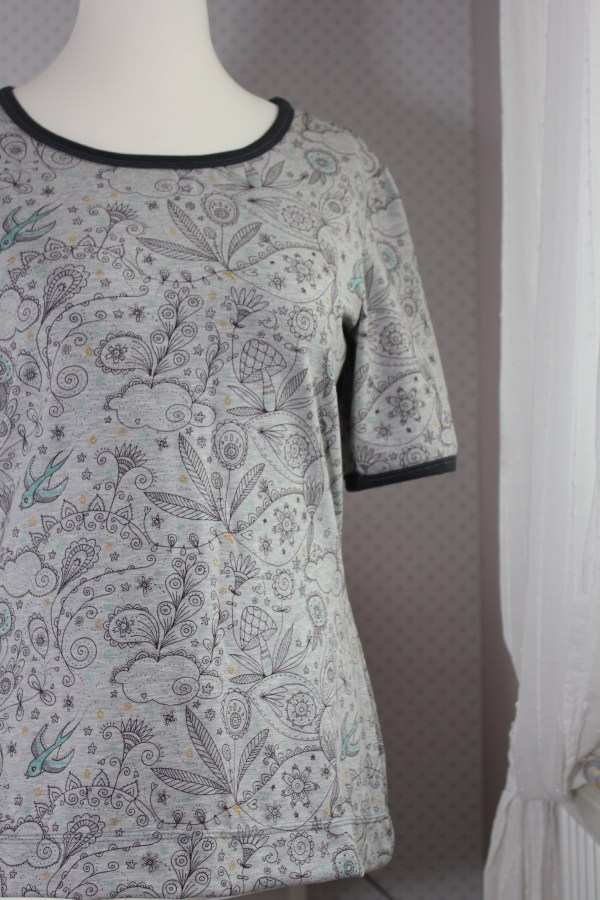 Bilder sagen mehr als Worte. Schnitt: Freebook Ladyrockers Saum: dunkelgrauer Sanetta-Jersey, mit Bandeinfasser an der Elna easycover gesäumt Stoff: Manga-Kombi von SuSaLabim (Lillestoff)