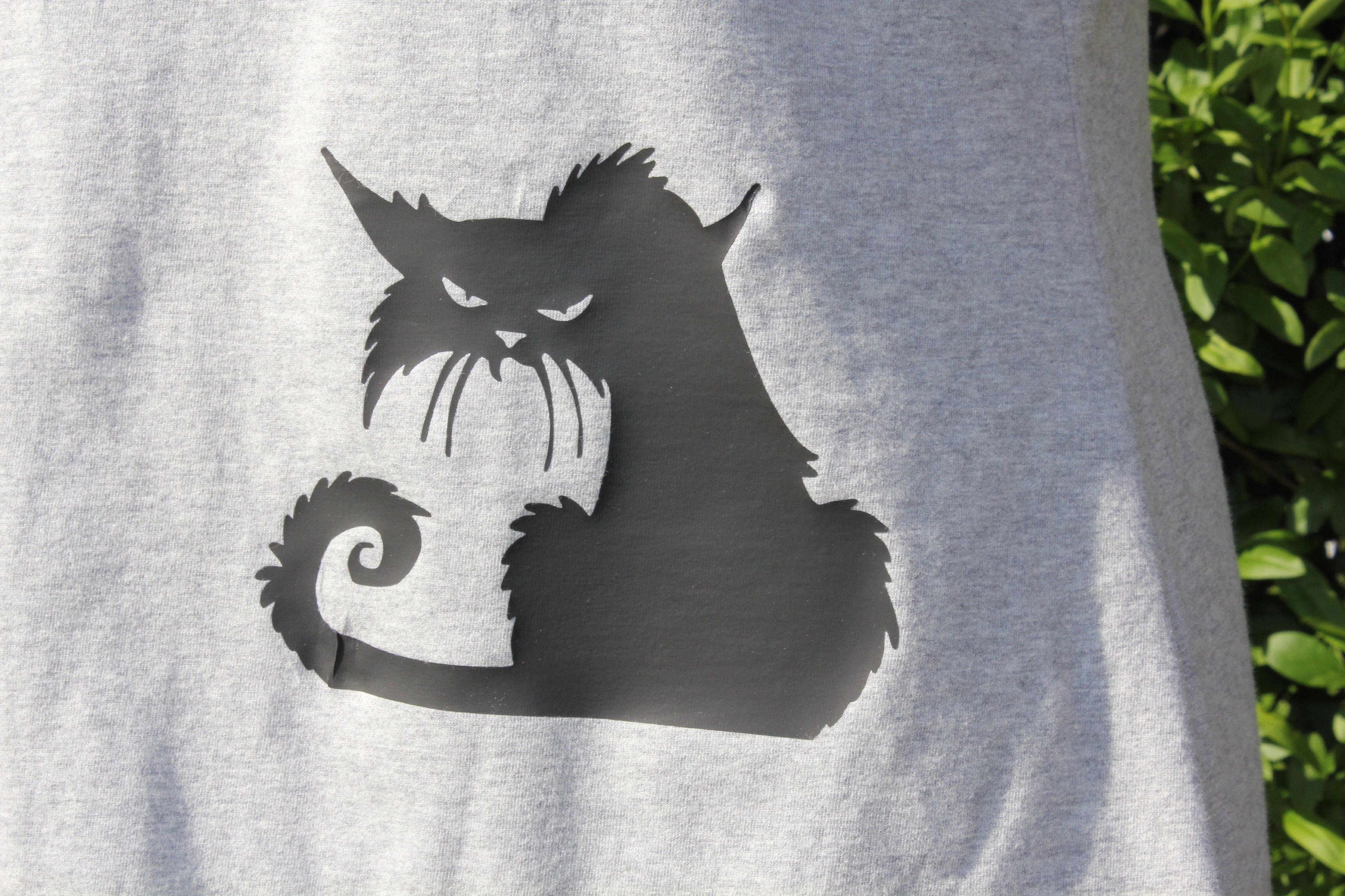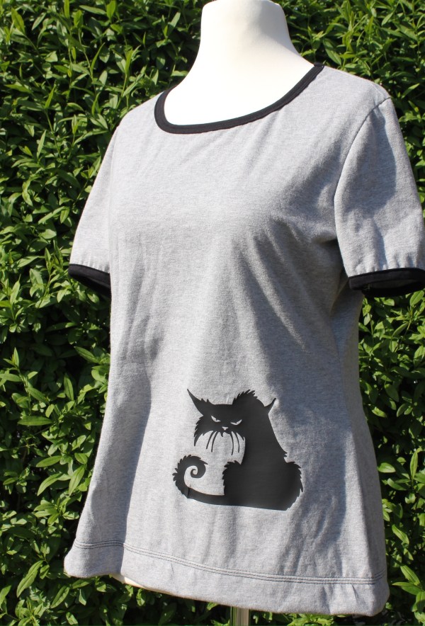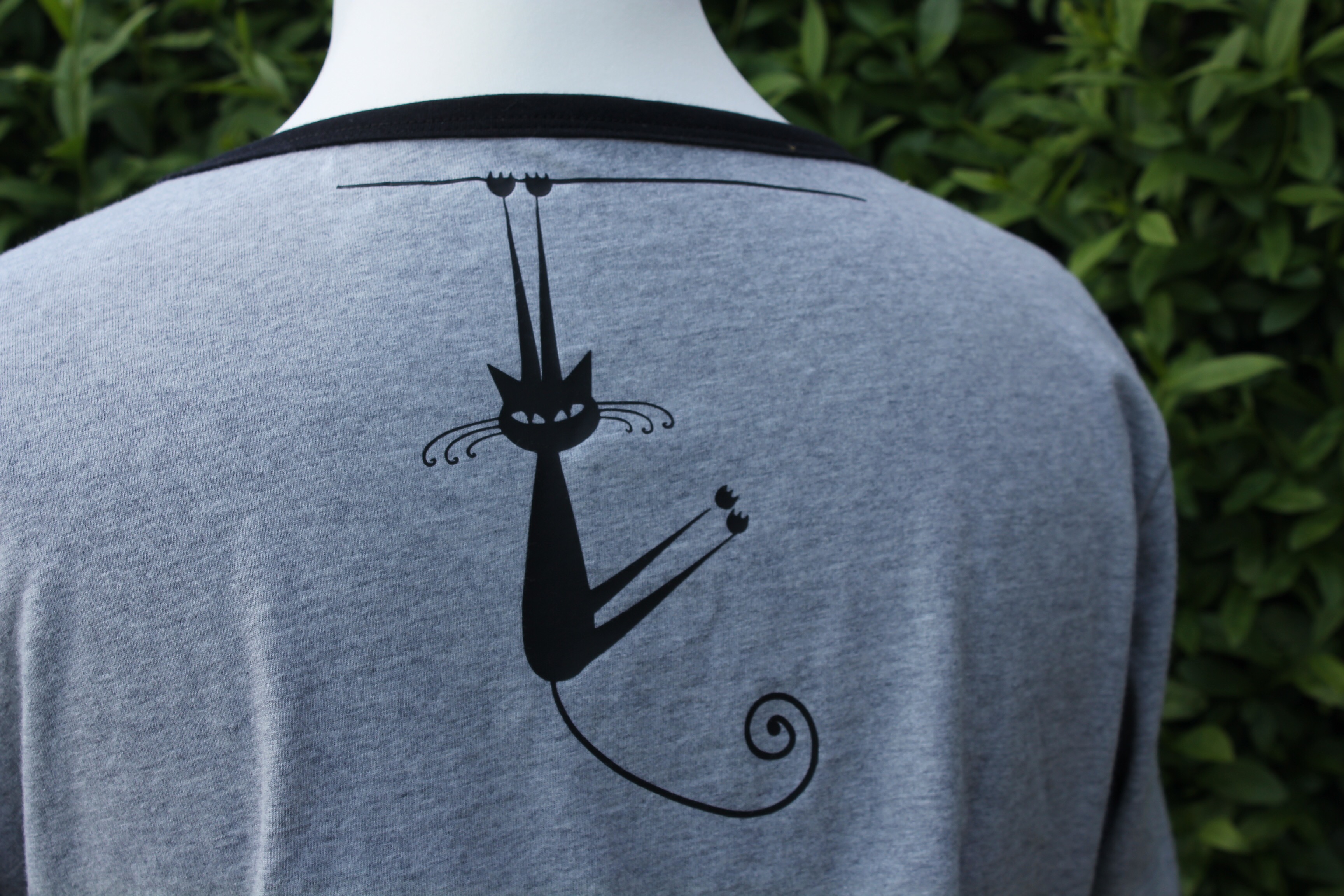 Es gibt so Ideen, die schwirren Monate- ja sogar fast Jahrelang im Kopf herum. Als Kind hatte ich mal ein flieferfarbenes Katzenshirt. Das hatte ich mal von meiner Mama abgestaubt und dann hab ichs getragen, bis es auseinanderfiel. Es war schon fast durchsichtig, aber ich liebte es einfach. Irgendwann musste es dann trotzdem weg, aber ich wollte immer so ein Ähnliches wieder haben. Gut, die Farbe wäre mittlerweile nicht mehr so meins, aber Katzen liebe ich nach wie vor sehr. Nachdem im März Lumpi von uns gegangen ist, konnte (wollte) ich davon erstmal nichts mehr wissen, obwohl Jersey und Katzen-Plots firedlich im Schrank schlummerten und auf ihre Bestimmung warteten. und jetzt war es soweit. Miauuuuuuuuuu. 😼