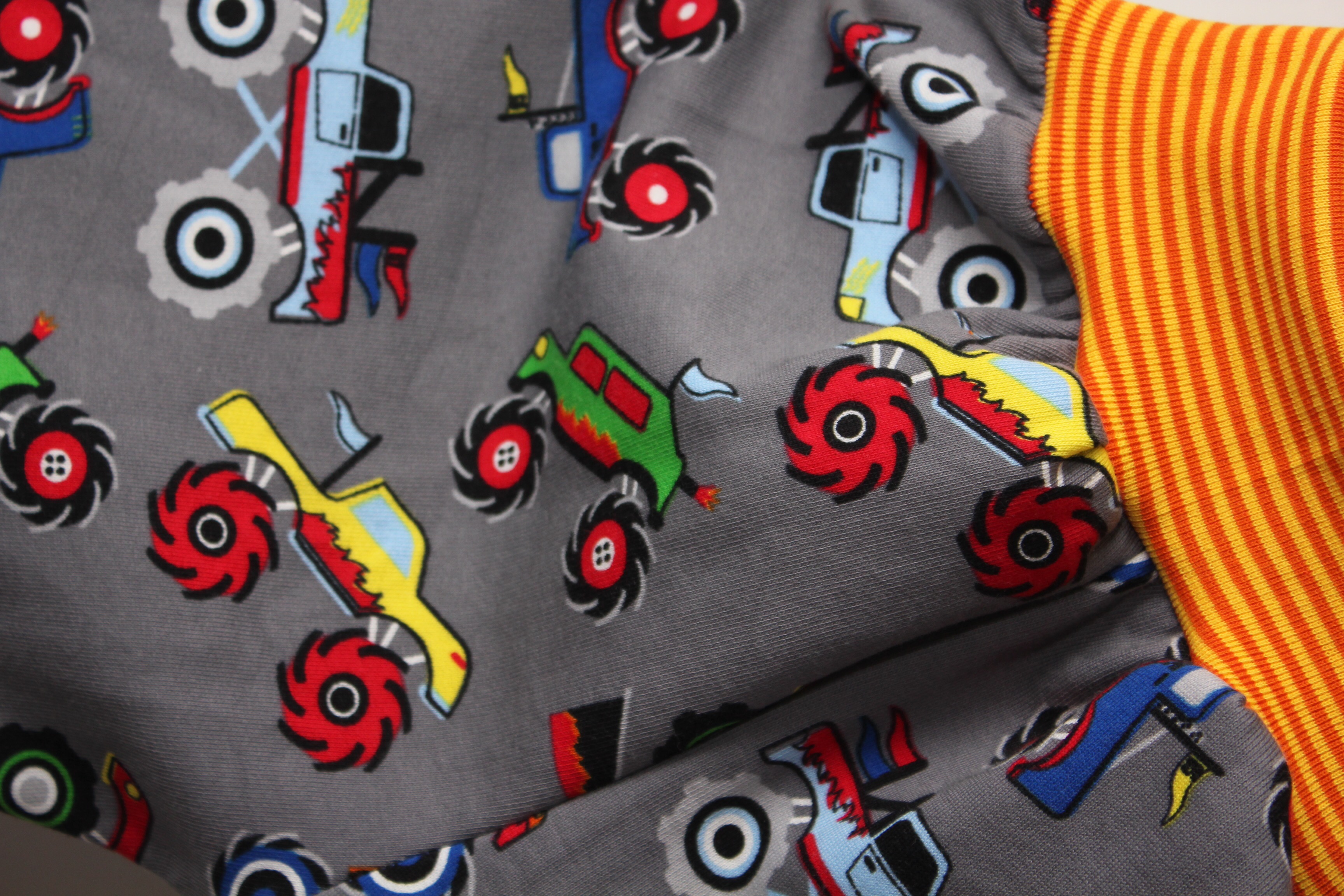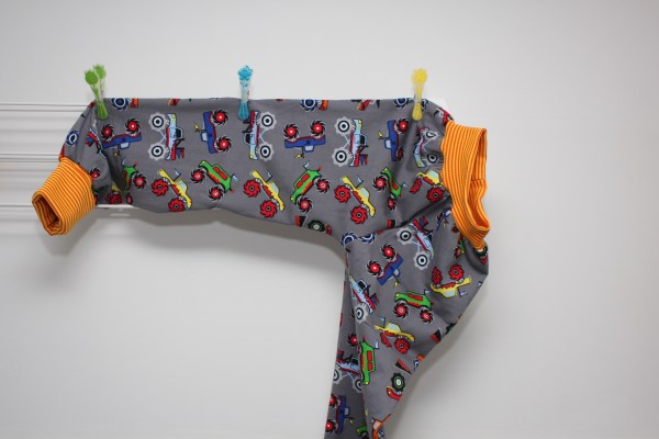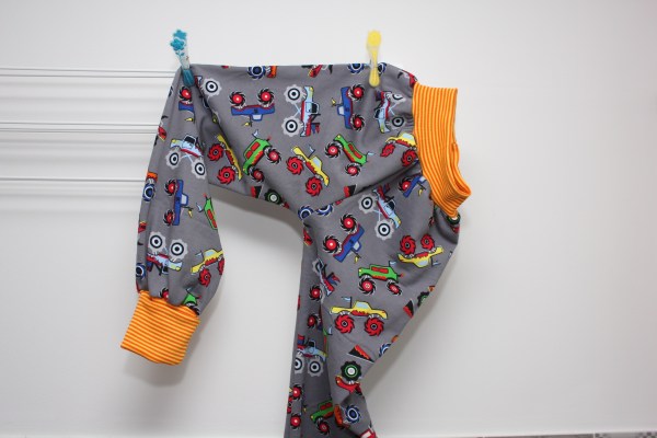 Heute ohne viel Worte. Der große Hase brauchte neue „Jogginghosen“, halt was rum rumschlumpfen zuhause. Bisher habe ich immer Interlock genäht, diesmal gibts ein paar kuschlige aus innen angerauhtem Sweat. Die Beinbündchen habe ich doppelt so lang gemacht, anfangs zum Umschlagen und später zum „Mitwachsen“.