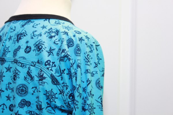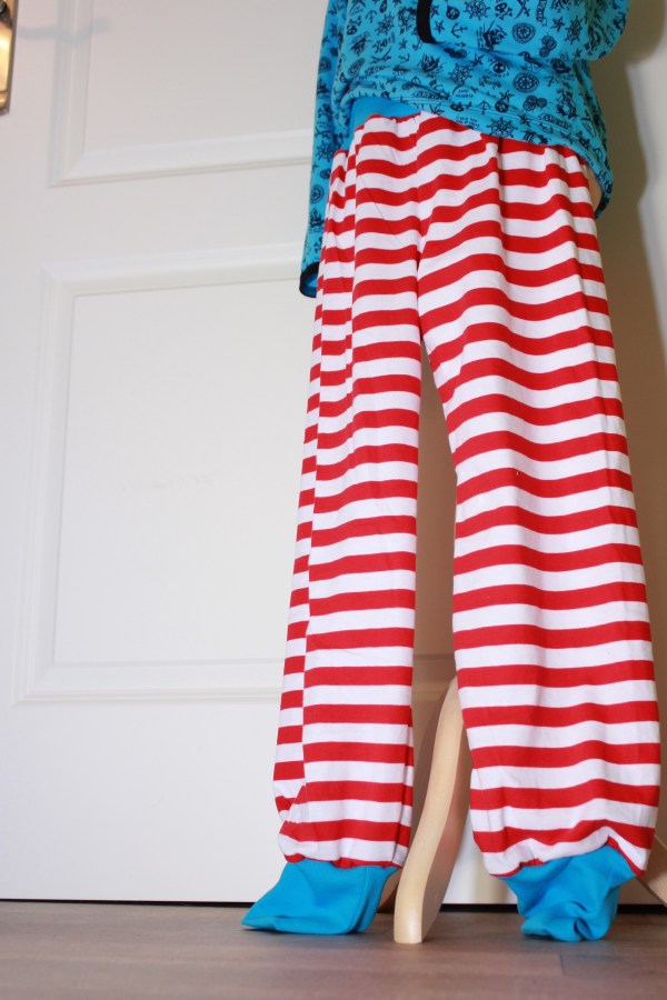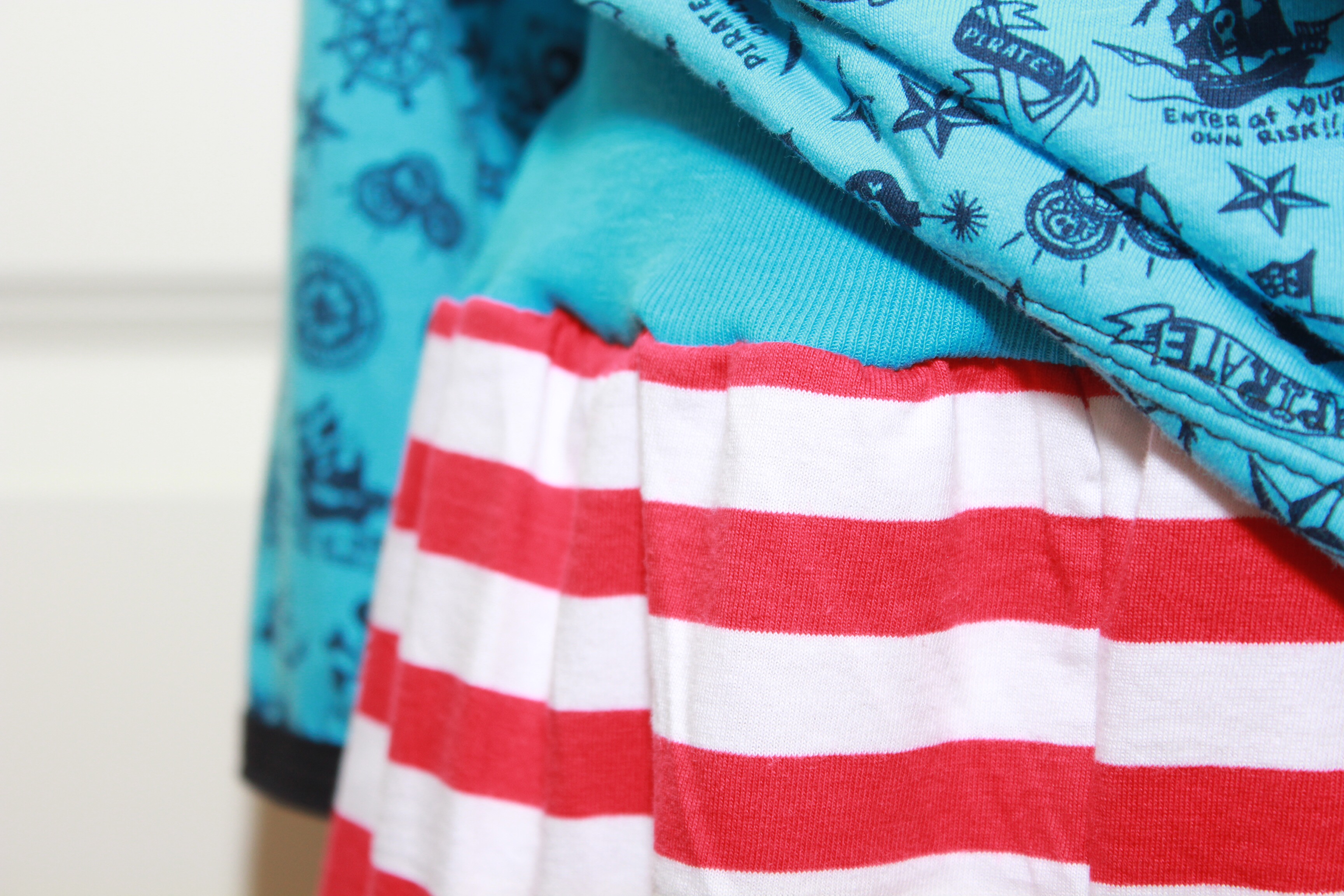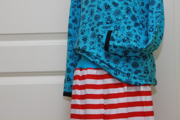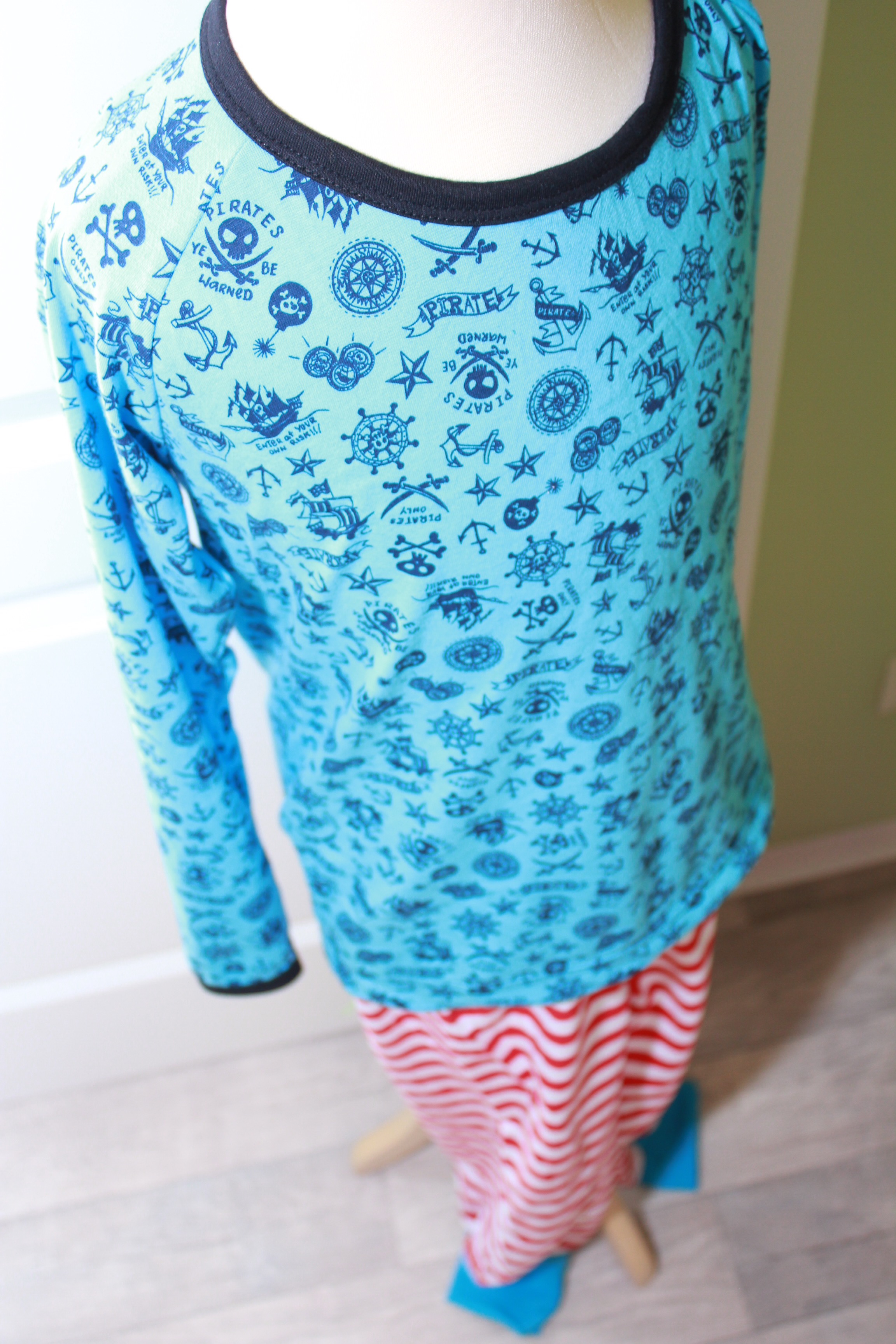 Ich war wieder fleißig und haben dem großen Hasen einen neuen Piratenschlafanzug genäht. Für das Oberteil habe ich Sanetta-Piratenjersey in einen Jonte verwandelt. Die Hose ist die Jogging Rockers, ein Freebook von Mamahoch2, ebenfalls genäht aus Sanetta-Jersey in rot-weiß.