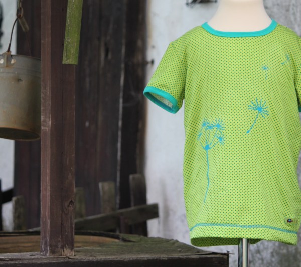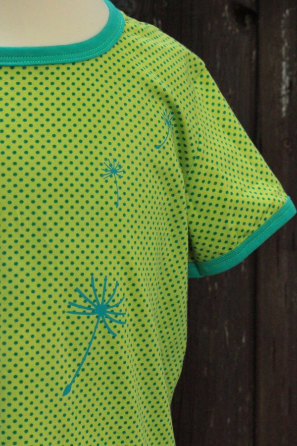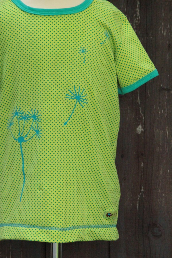 … flieg hinauf zu den Wolken. Als ich ein tolles Shirt mit Pusteblumen sah, hatte ich gleich die Idee für ein Geburtstagsgeschenk für meine Nichte. Die Plotterdatei bekommt man von Kerstin Bremer. Genäht habe ich wieder mal ein ungemixtes MaxiMix aus süßem gepunktetem Jersey von Herbert Textiel, gekauft auf dem Stoffmarkt.