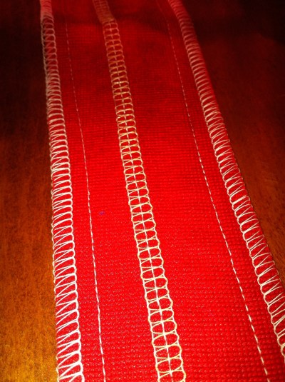 Schaut euch diese Naht an. Super Fadenspannung, würde ich sagen. Die Overlocknaht an den Seiten stammt auch von einer anderen alten Maschine.