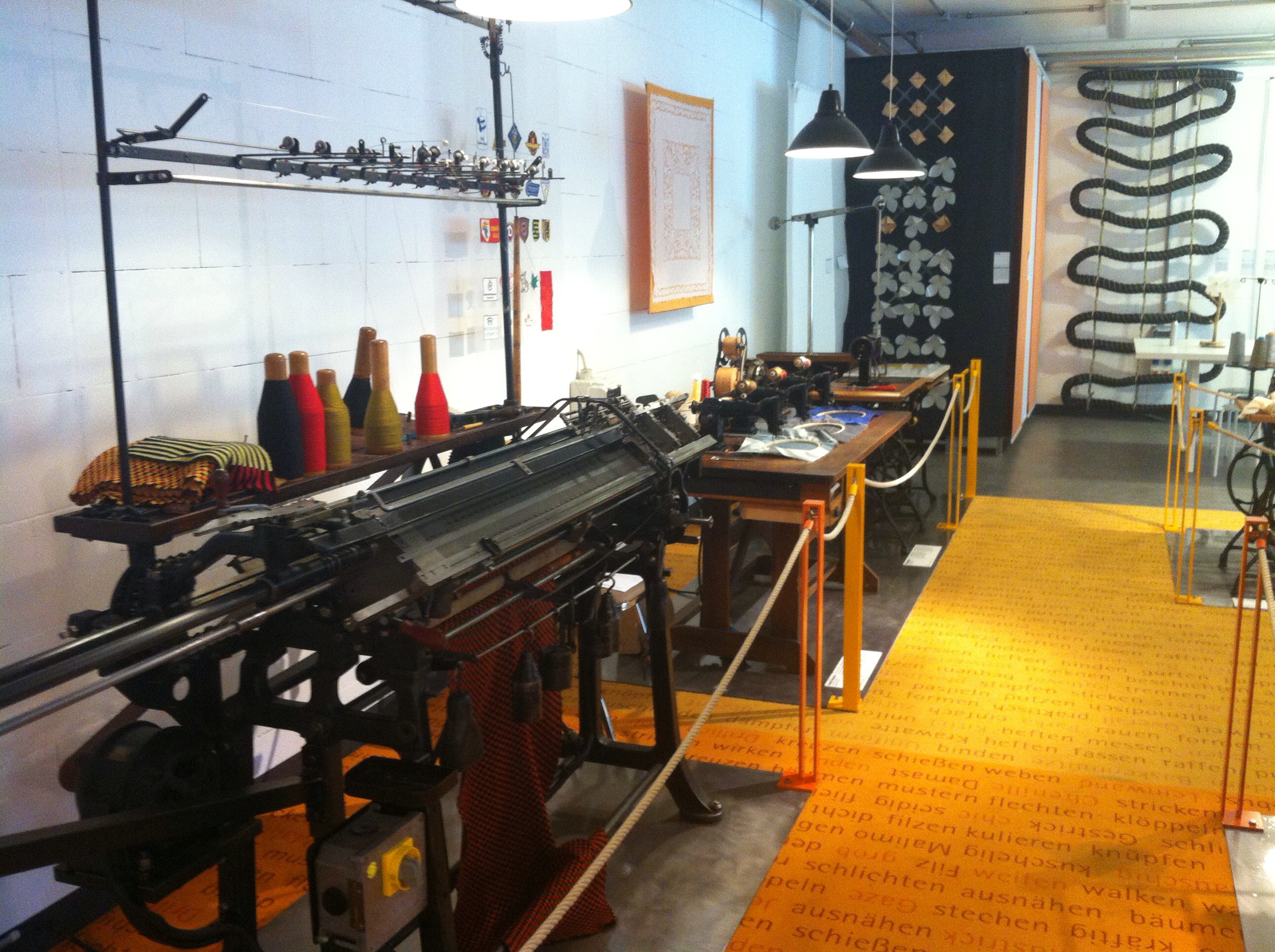 Ich gebs zu, ich bin kein Museumsgänger. Mal ehrlich, wer von euch war in den letzten Jahren in dem Museum, was direkt vor eurer Nase liegt? 😉 Aber ich habe mich hinreissen lassen, mal mit in das Industriemuseum zu gehen. Ja, es gab eine halbwegs spannende Führung zu verschiedensten (Dampf-)Maschinen und Motoren und Techniken. Doch während wir so durch die klimatisierten Hallen liefen, blieben meine Gedanken an der großen Maschine mit den vielen Garnkonen hängen. Leider kamen wir an dieser nun gerade nicht vorbei und sie wurde nicht erklärt. Am Ende der Führung kam dann der Satz: „Wer sich noch für die Textilherstellung interessiert, ist herzlich eingeladen, sich in der unteren Etage umzusehen.“ Ja, ich, hier! Also ab in den Keller und dort wartete das Paradies an alten Spinn-/Näh-/Stick-/Strick/Web- und Häkelmaschinen und noch einiges mehr. Ein paar Schnappschüsse habe ich mit dem Handy gemacht, aber ich empfehle euch (Näherinnen), wer von euch mal im schönen Sachsen unterwegs ist, sollte unbedingt einen Abstecher ins Chemnitzer Industriemuseum machen. 😉