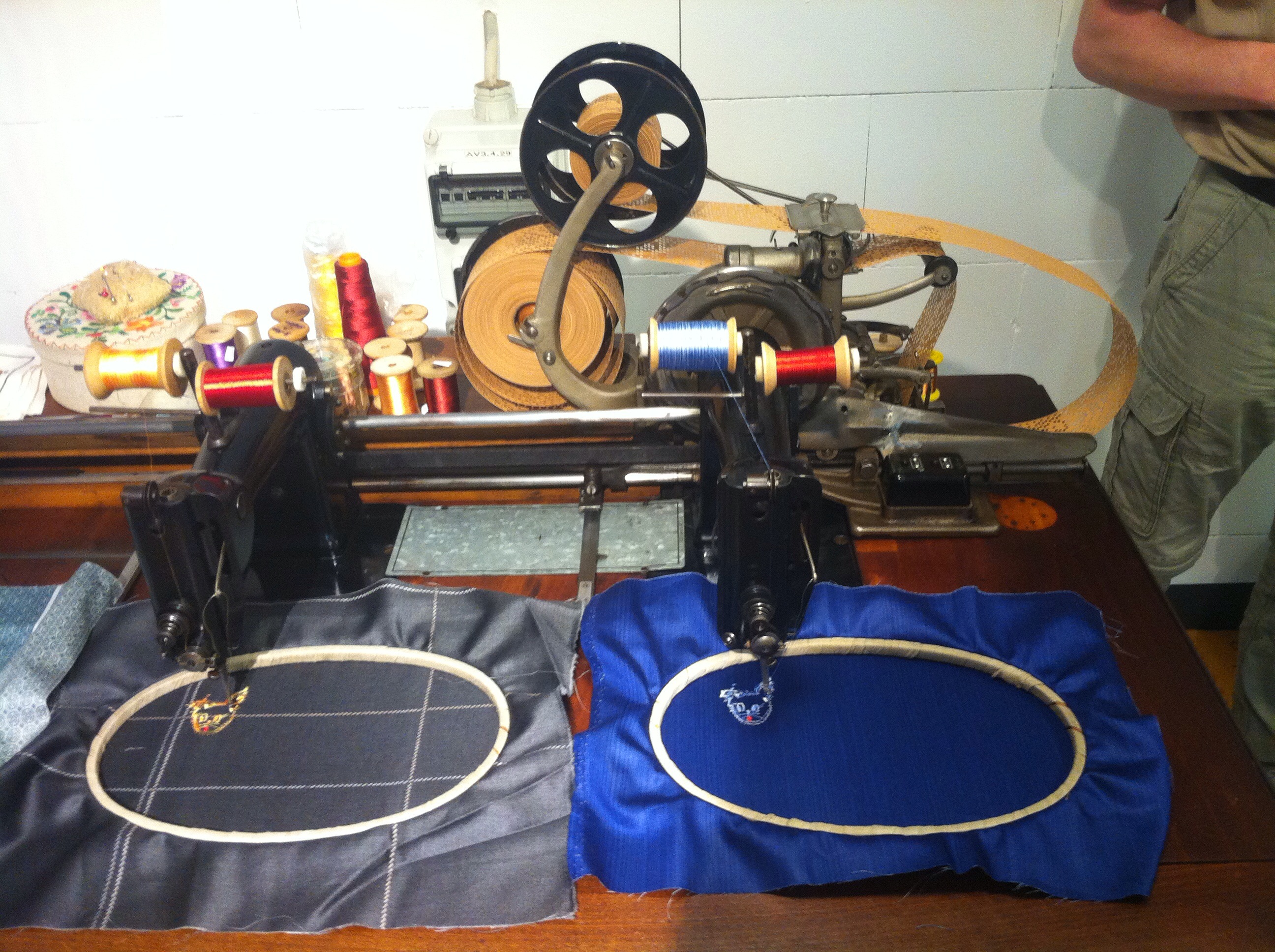 Etwas fortschritlicher war später das Sticken mithilfe von Lochstreifen. Hier wurden schon mehrere Motive parallel gestickt, das Muster wurde vom Lochstreifen abgelesen.