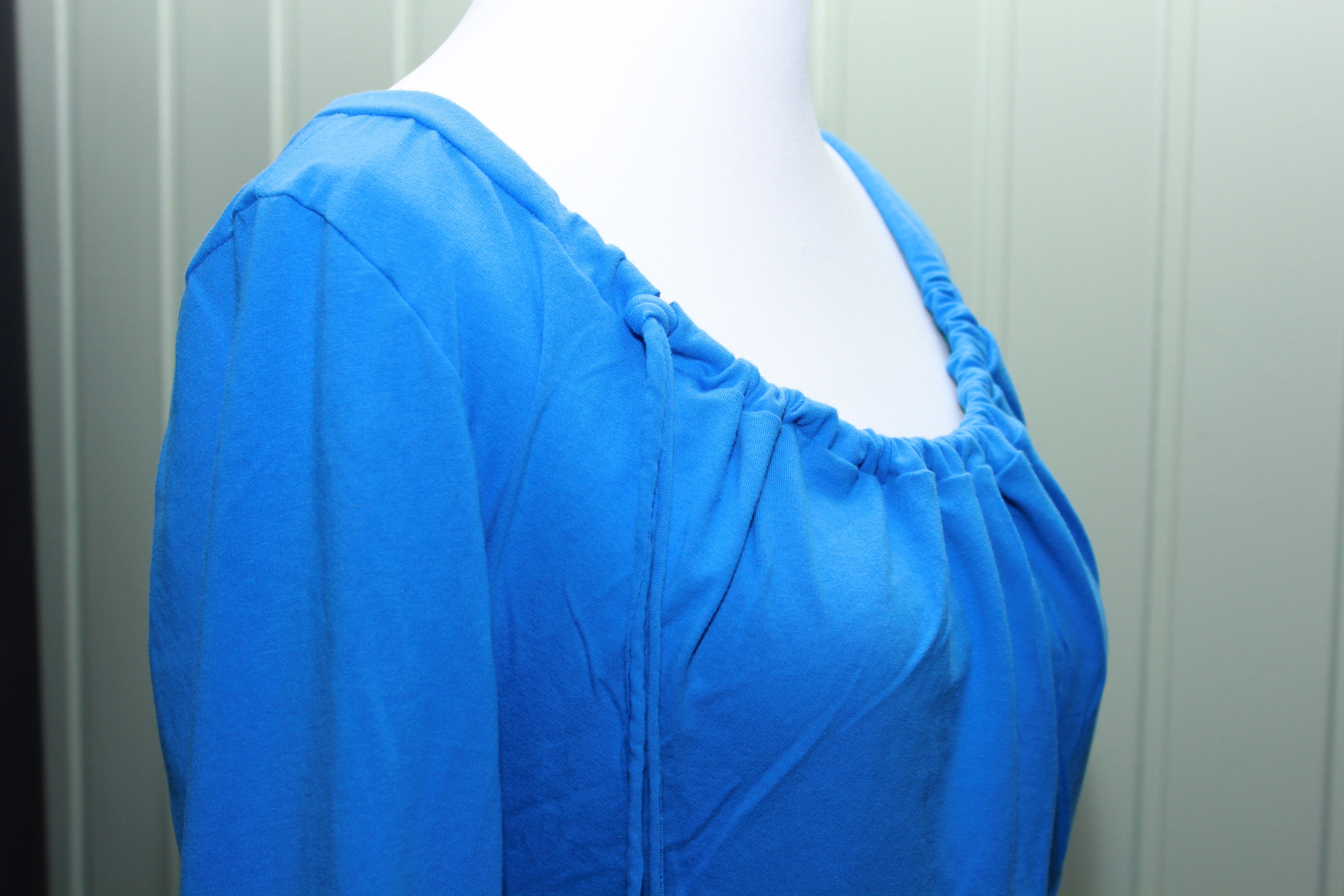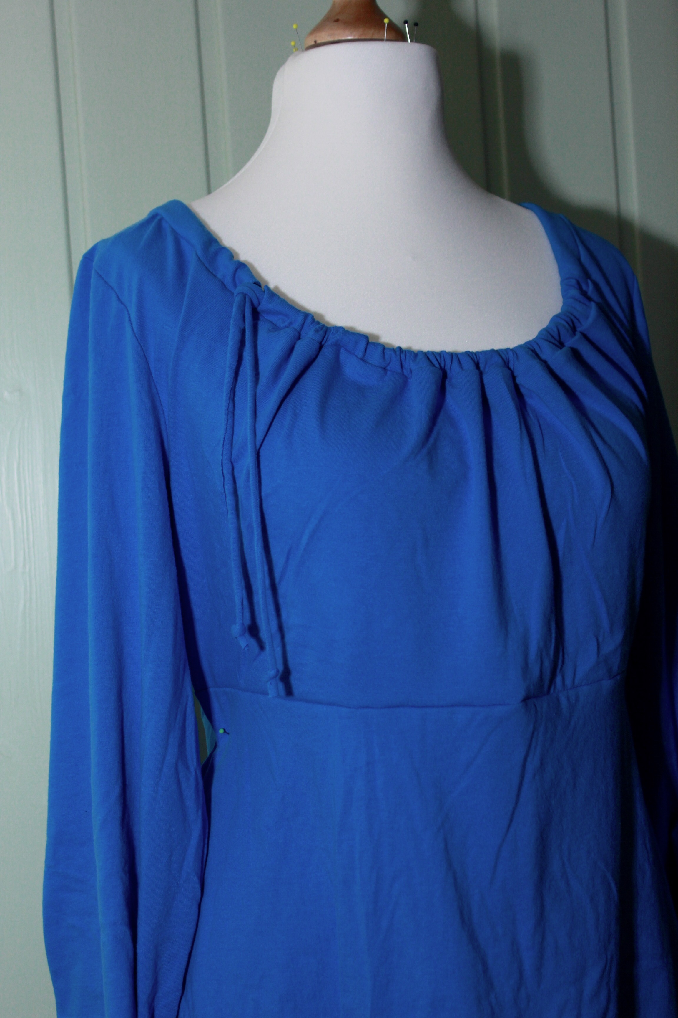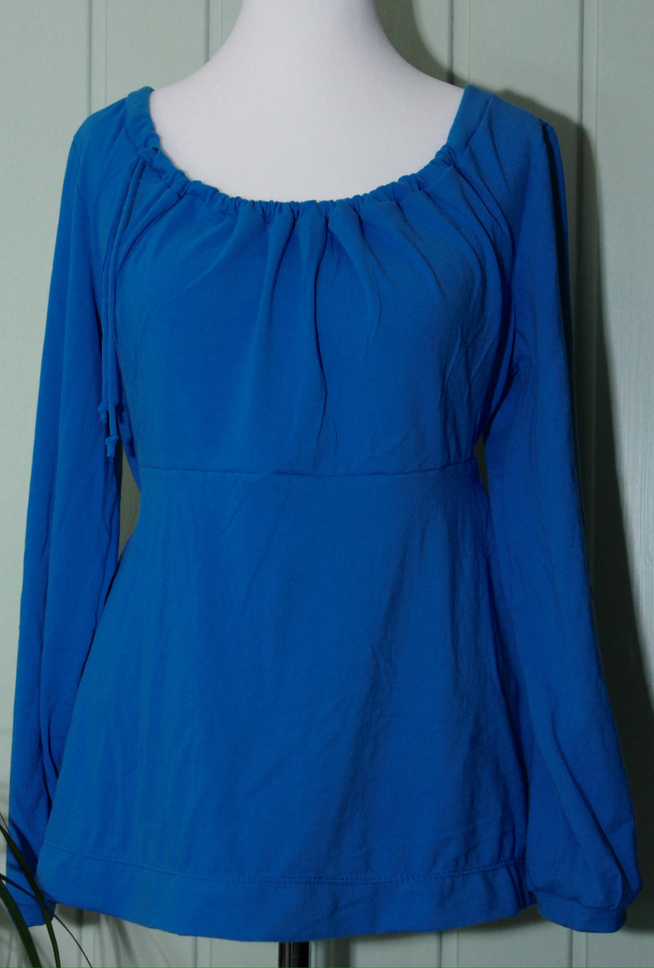 Die Länge wurde wieder auf Shirtgröße gekürzt, unten mit doppelter Covernaht gesäumt.