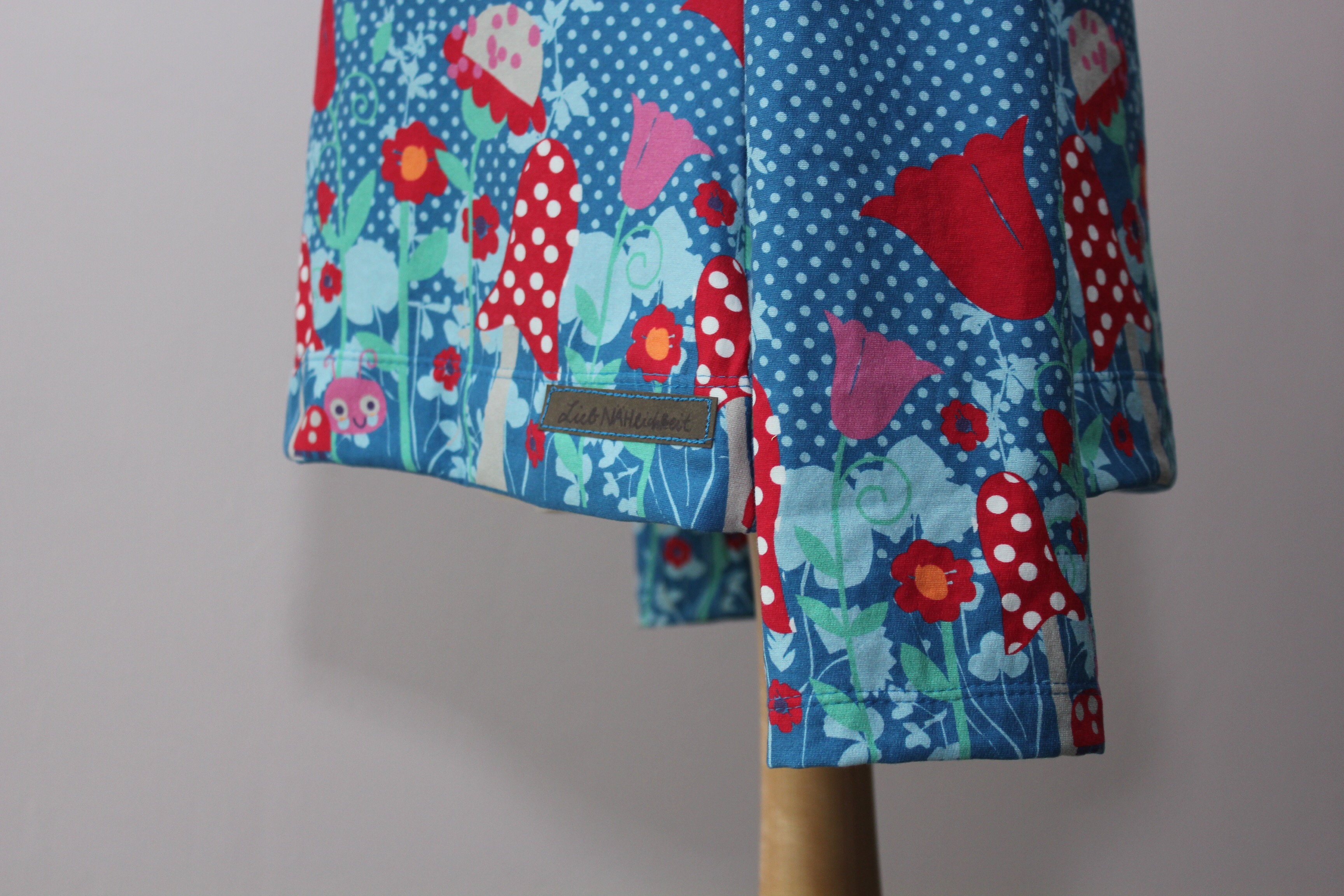 Es gibt Stoffe, da habe ich den Eindruck, die sind extra für mich designed worden 😏. Bei Janeas World gibts da immer mal wieder solche Exemplare. Durch sie bin ich letzten endes sogar zum Nähen gekommen. Silke von Zwergenschön hat da auch ein echt gutes Händchen, und jetzt auch mal wieder Hilco mit seinem „Lovely Forrest“. Als hätten sie es gewusst, dass die Grünphase sich dem Ende neigt, gibts jetzt einen türkisfarbenen, dünnen Sweat mit Pünktchen und auch noch einem tollen Fliegenpilz-Print an der Stoffkante entlang: „Lovely Forrest“. 💙💙💙
