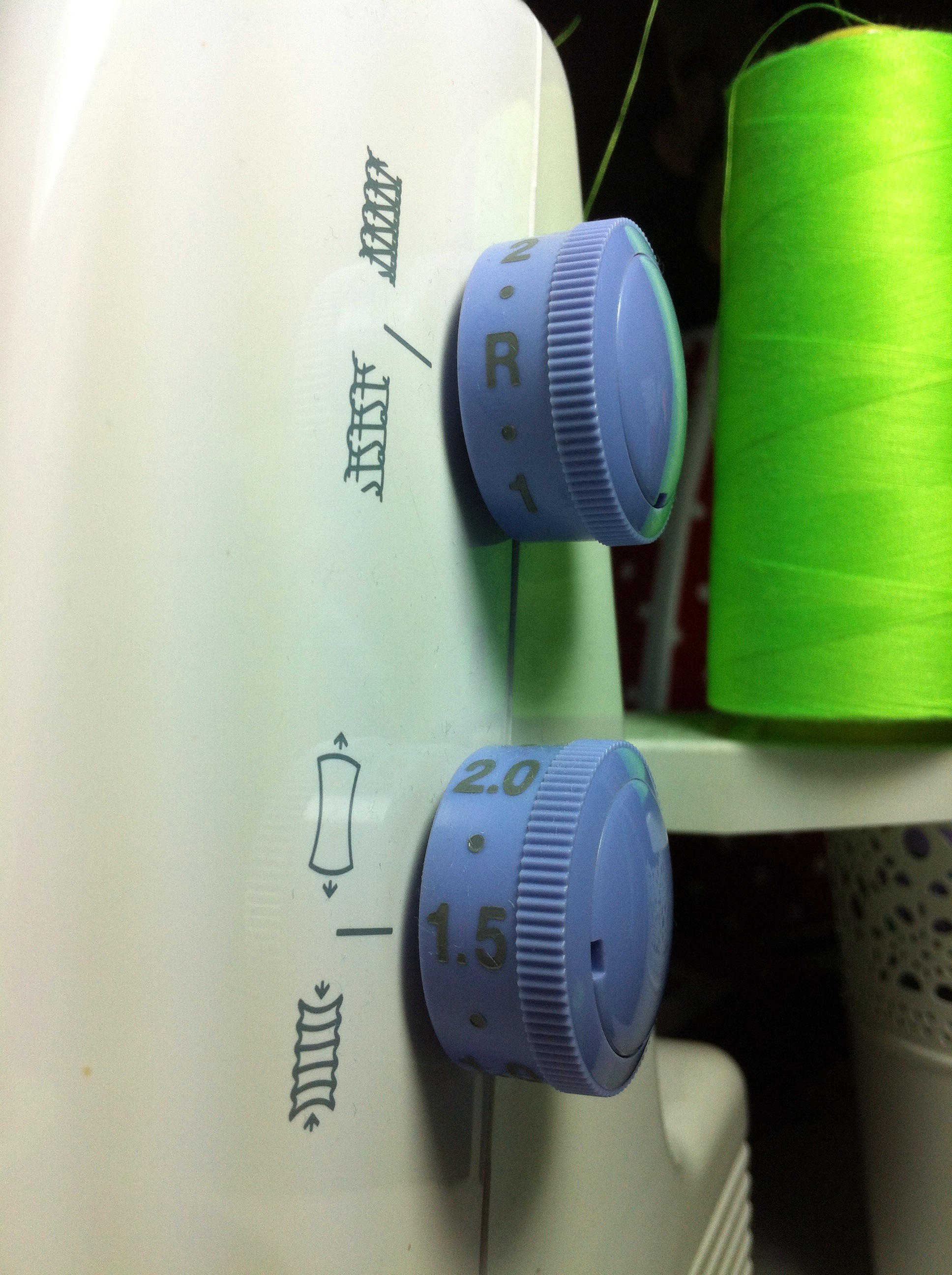 Die Stichlänge kann auf R gedreht werden. Das R steht auf dem Rad anstelle der 1,5. Theoretisch kann man mit jeder Stichlänge einen Rollsaum nähen, das sollte man an einem Probestückchen mal ausprobieren, wie eng man die Schlaufen haben möchte.