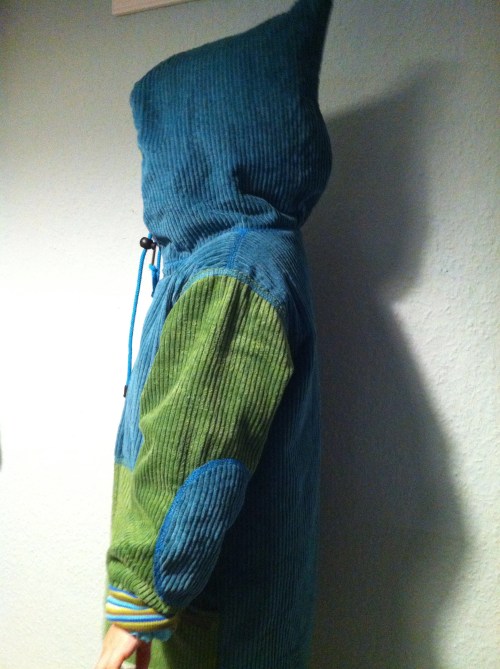 Wisst ihr warum ich nähe? Weil ich auf Felljacken stehe. Und auf bunt. Und auf Zipfelkapuzen. Und auf Sterne. Und auf Cord. Und das am besten alles zusammen. Meine Mutter hat damals schon, als ich zum ersten Mal schwanger war, mich von jeder Zipfelkapuzen-Plüschjacke in den Babyklamotten-Geschäften weggezogen: „Drei reichen – glaub mir!“. Und dann hat es doch soviele Jahre gedauert, bis ich die ultimative Jacke für den großen Hase genäht habe.