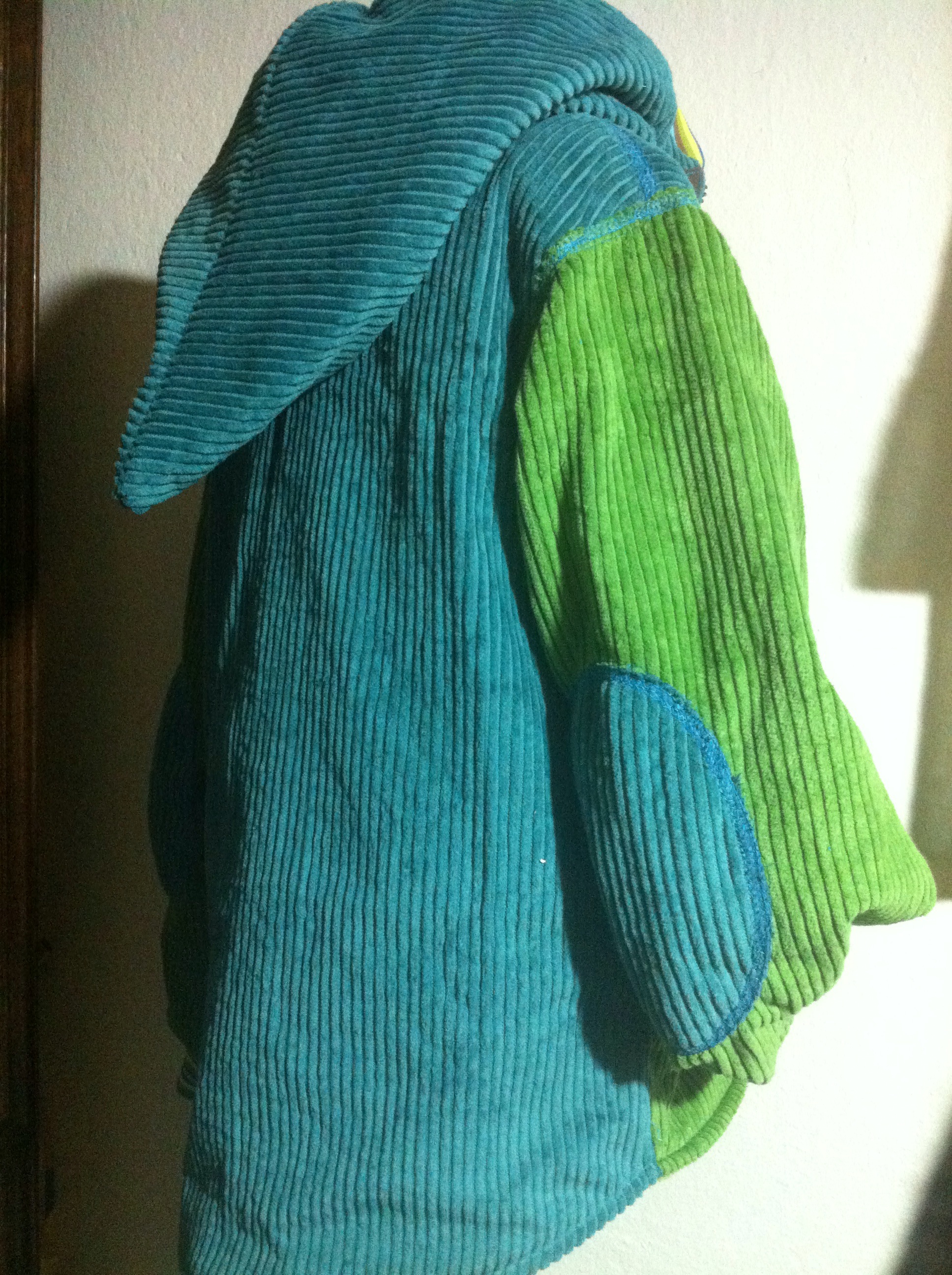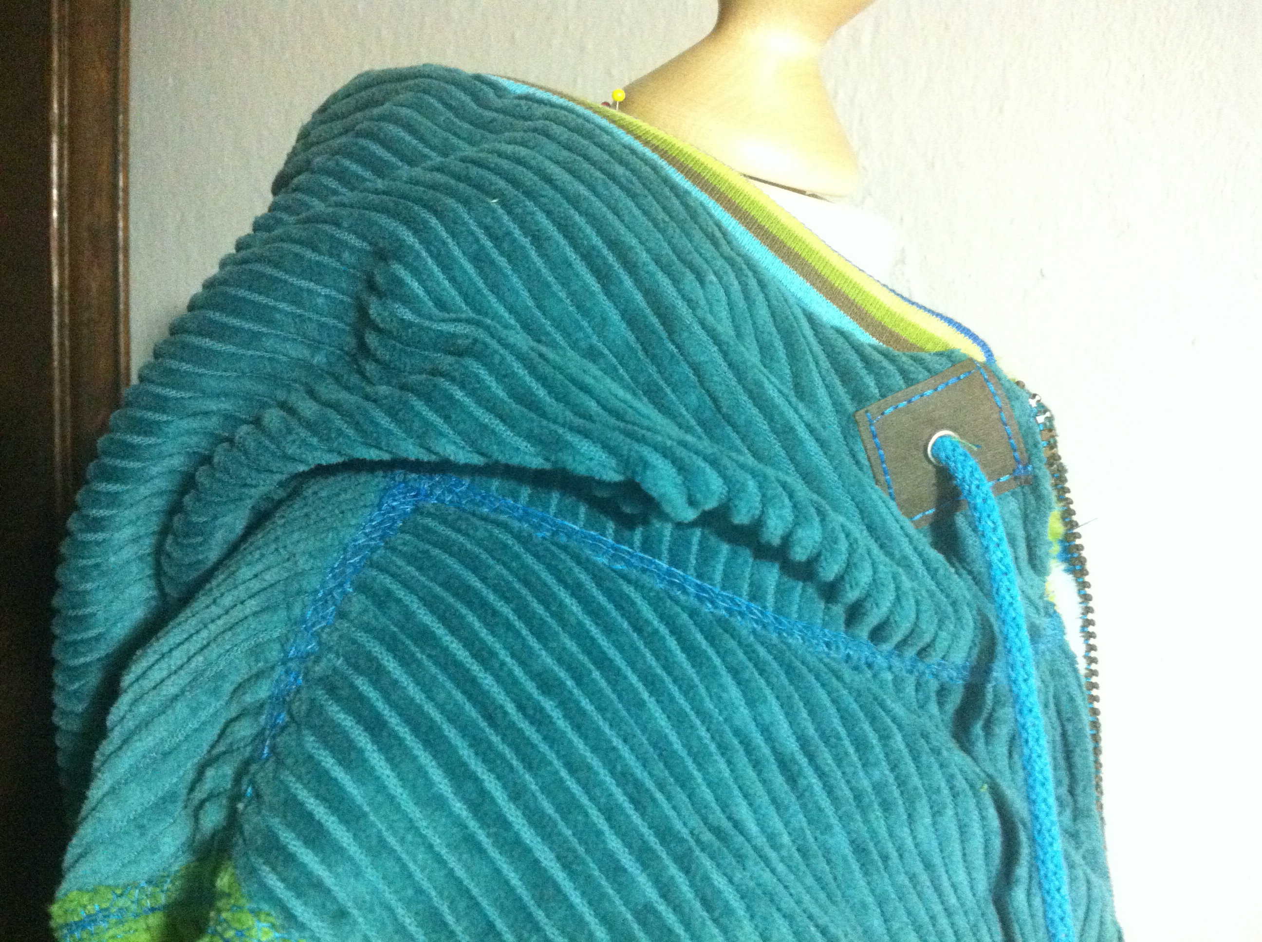 Wisst ihr warum ich nähe? Weil ich auf Felljacken stehe. Und auf bunt. Und auf Zipfelkapuzen. Und auf Sterne. Und auf Cord. Und das am besten alles zusammen. Meine Mutter hat damals schon, als ich zum ersten Mal schwanger war, mich von jeder Zipfelkapuzen-Plüschjacke in den Babyklamotten-Geschäften weggezogen: „Drei reichen – glaub mir!“. Und dann hat es doch soviele Jahre gedauert, bis ich die ultimative Jacke für den großen Hase genäht habe.