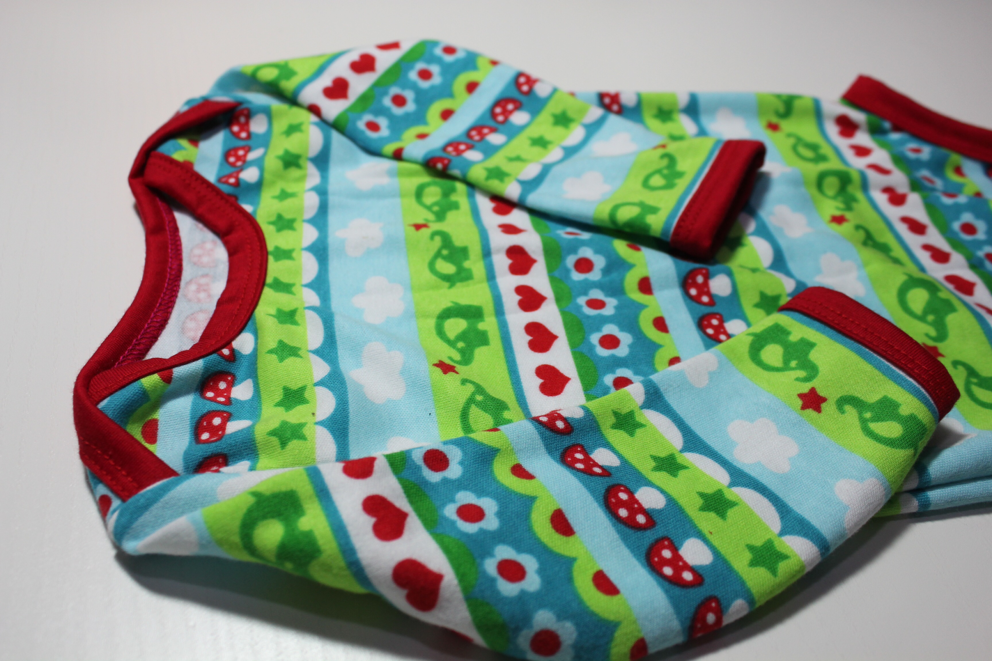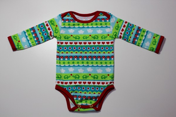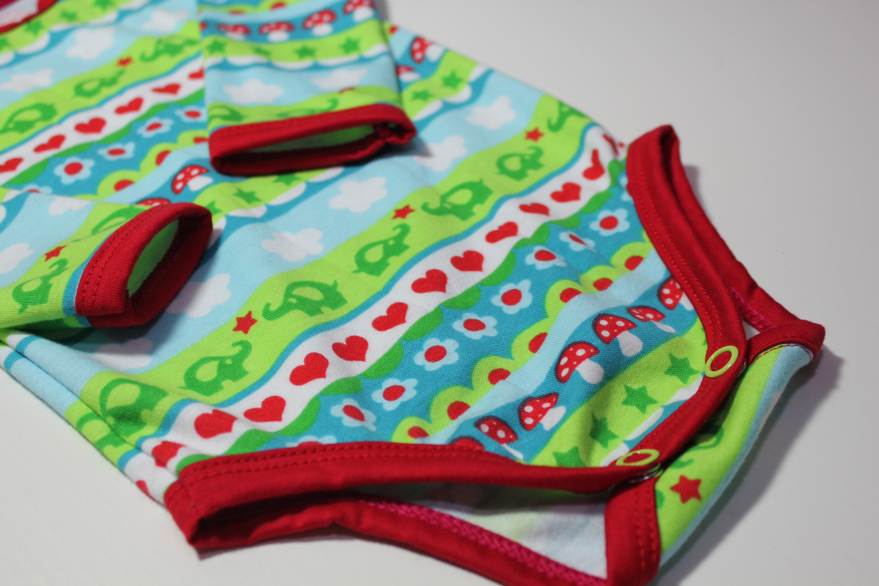 Ich ahnte ja gar nicht wieviel Spaß es macht, für kleine Babymädchen zu nähen. Und vor allem, wenn die Mama auf die gleichen Farben und Muster steht wie ich. Also konnte ich mich frei entfalten und nach dem Kuschelanzug und dem Wickelanzug ist noch ein Regenbogenbody mit amerikanischem Ausschnitt von Schnabelina entstanden. Es muss nicht immer Klimperklein sein, wenns was gutes kostenlos gibt 😉 😉