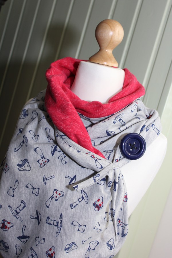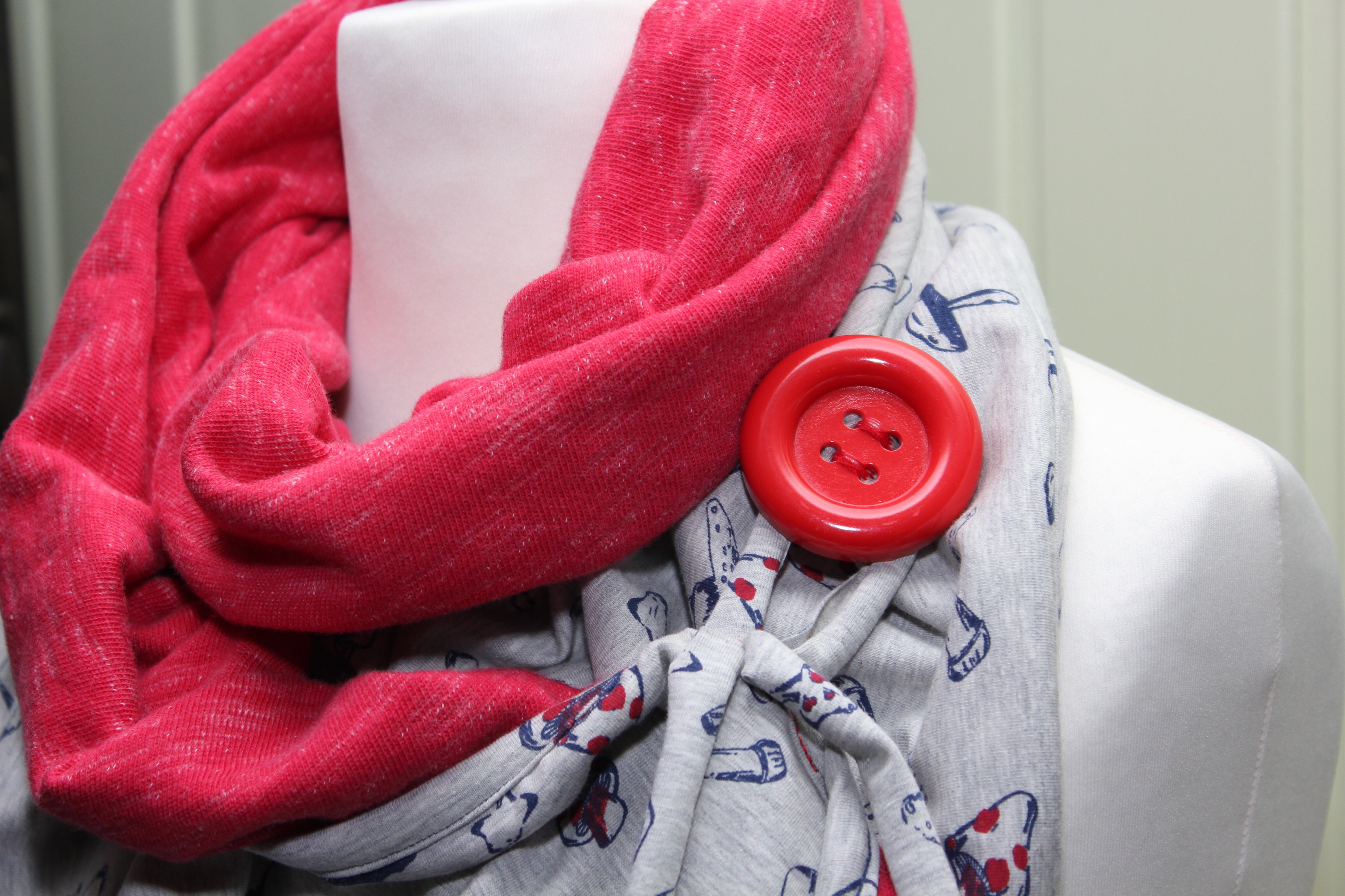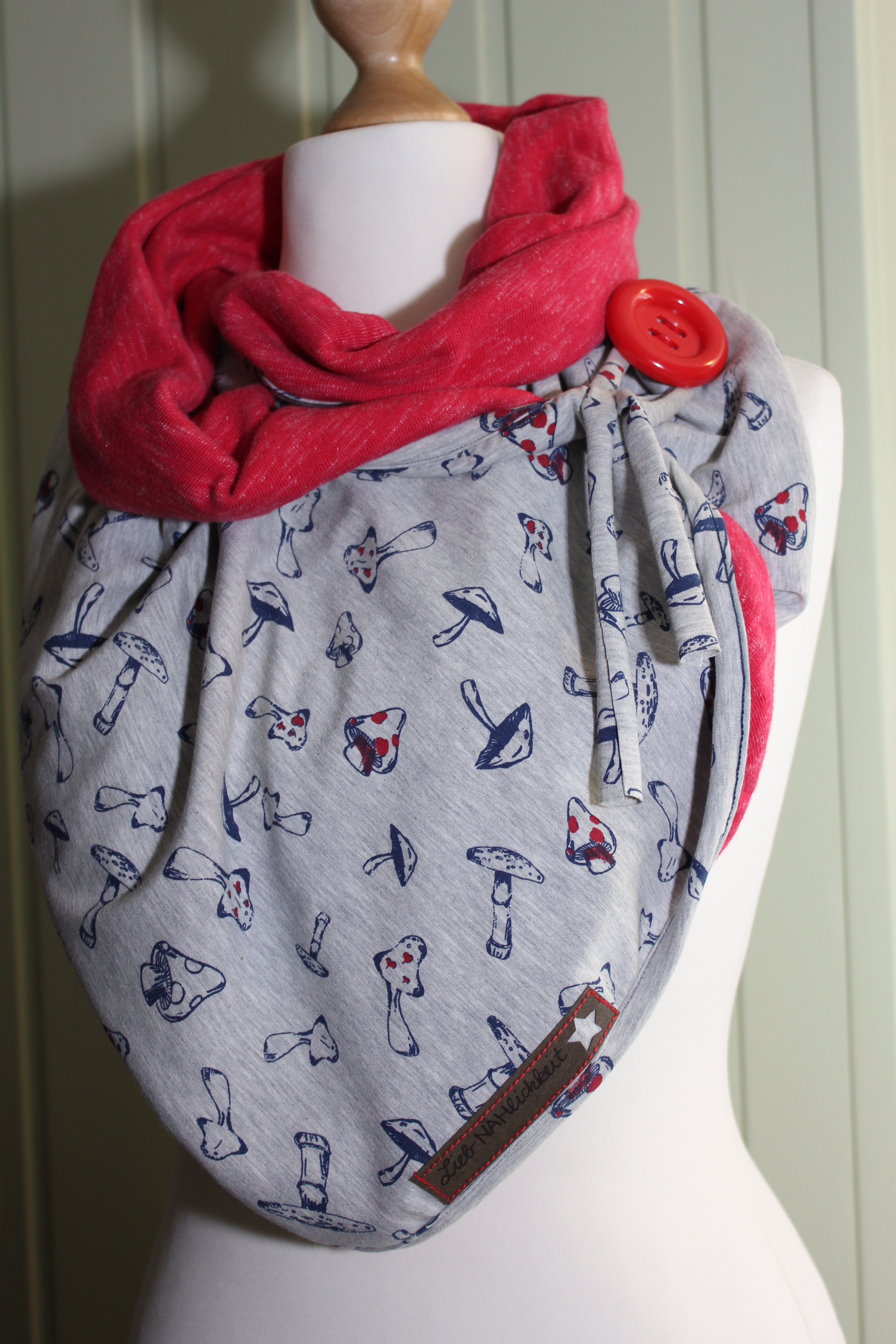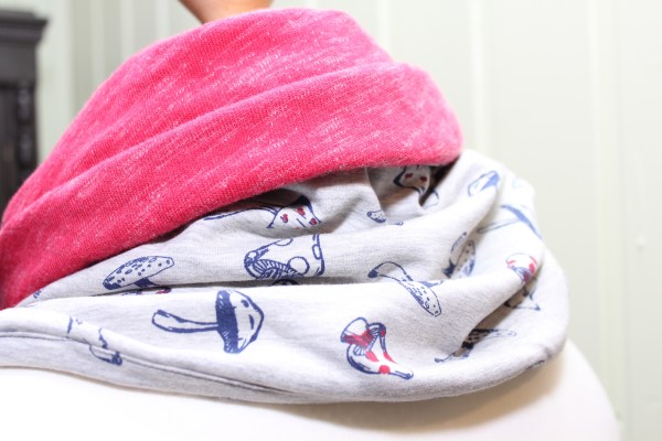 Inspiriert durch Leni Pepunkts Knopfloop habe ich dieses Jahr drei Varianten genäht. Zwei Pilzloops mit einer kuschligen Rückseite aus rotmeliertem Sweat (Sanetta): einen für meine rot-liebende Arbeitskollegin und einen für die beste Kindergarten-Erzieherin der Welt, sind entstanden. Beide haben sich sehr gefreut. 💗
