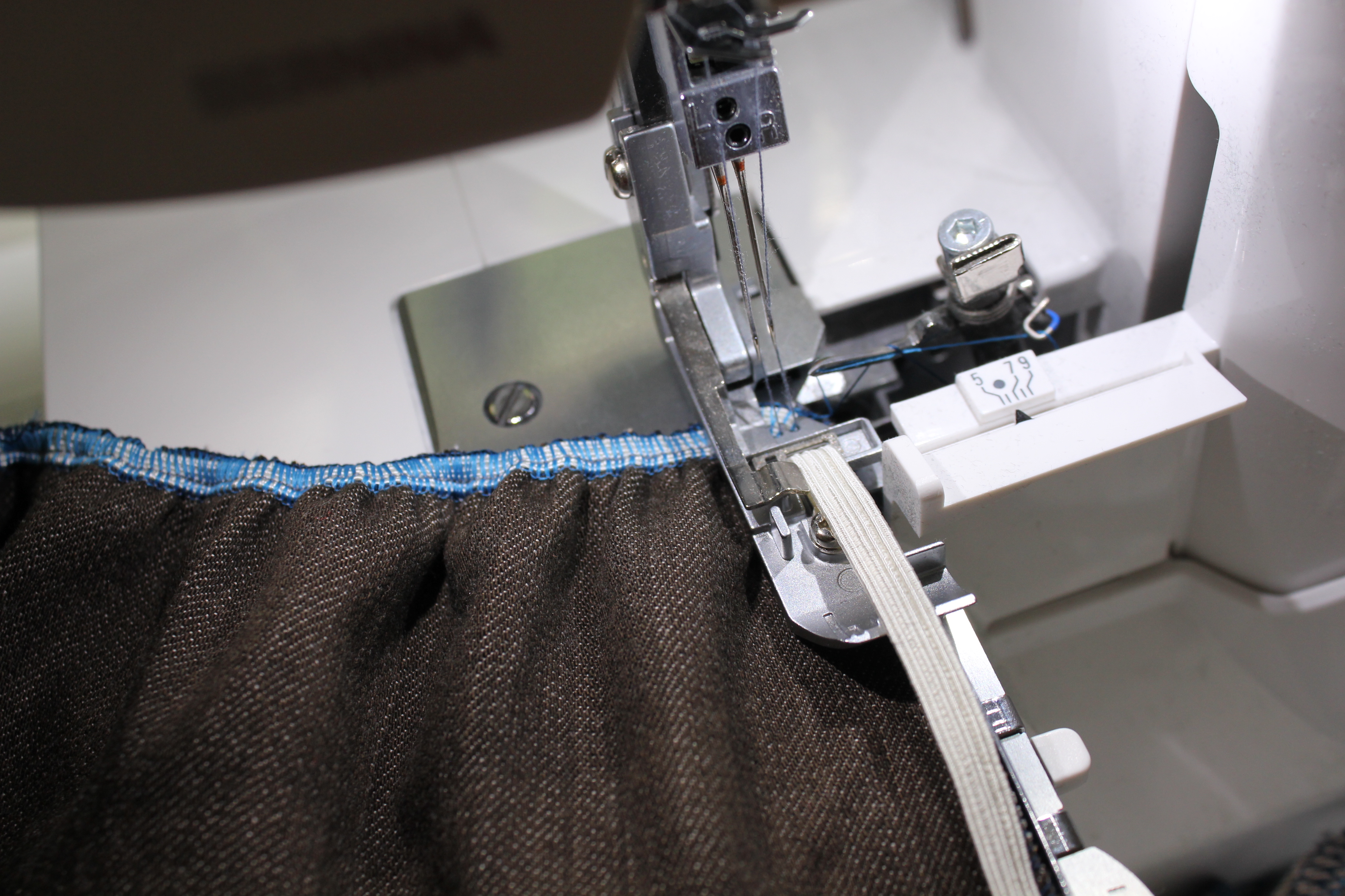 Mit dem mitgelieferten Standard-Fuß kann man auch Gummiband bis zu einer Breite von 4mm annähen.