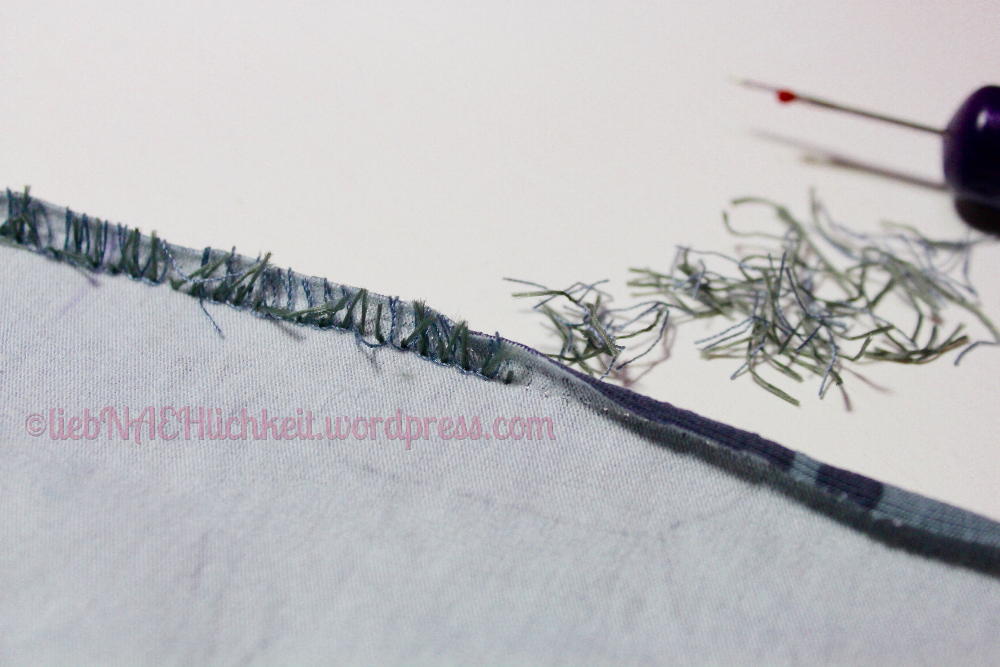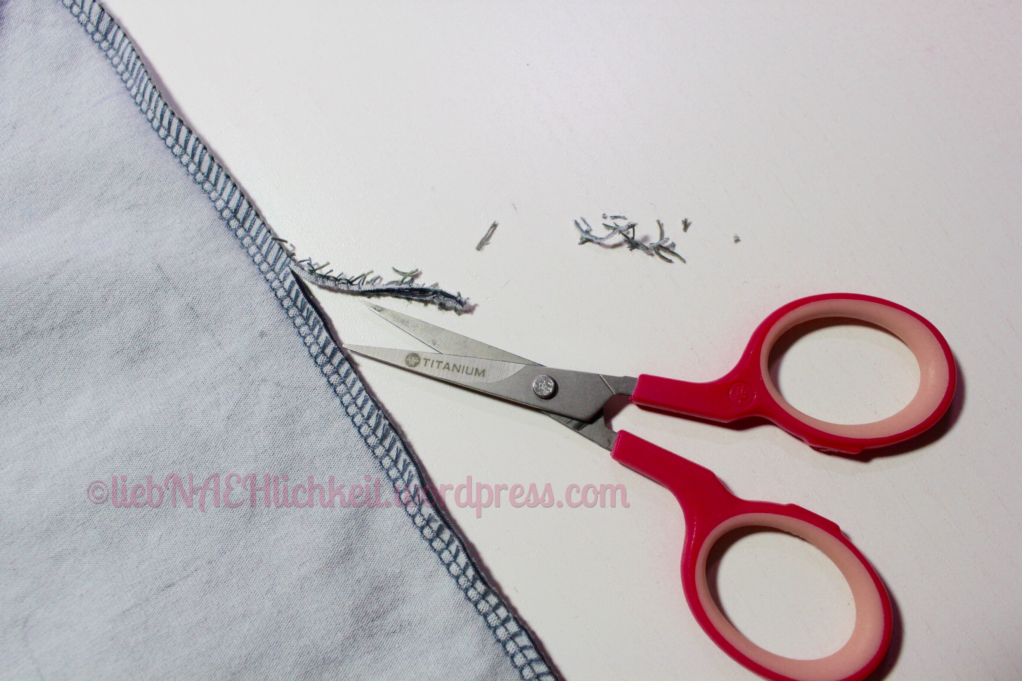Es gibt noch eine weitere Variante, bei dem man „mit Gewalt“ die Nadelfäden zuerst rauszieht. Diese Methode möchte ich nicht weiter empfehlen, da mir das besonders bei größen Nahtstücken zu Löchern im Jersey geführt hat. Ausprobieren könnt ihr das natürlich. Eine Anleitung gibts bei fuchsgestreift.blogspot.de.