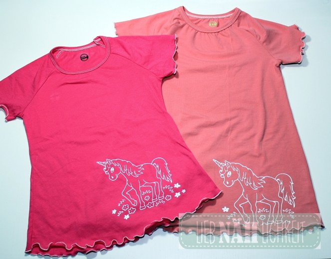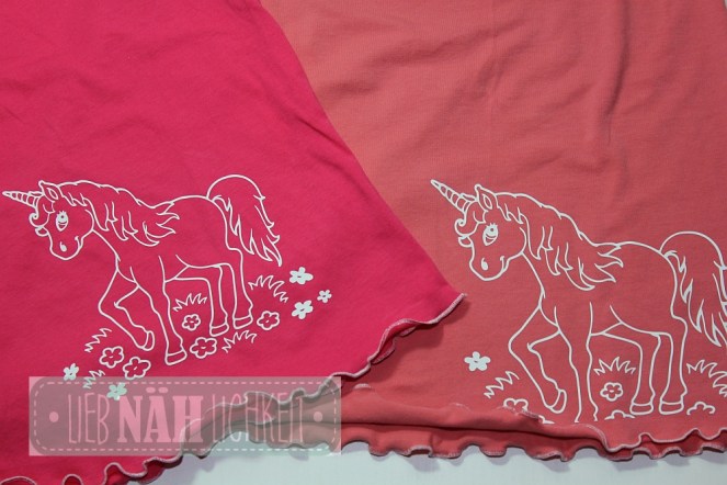 So, wie krieg ich jetzt die Überleitung hin, dass ich mich dem Ganzen nun doch gebeugt habe? Eigentlich wars ja so: die kleinen Kindergarten-Mädels waren zu Besuch und staunten über ein paar Kleidchen, die ich so genäht hatte. Und irgendwann zwischendrin fiel dann der Satz: „Aber keins mit Einhorn.“ Ganz ehrlich, ich weigere mich ja wirklich, diese Quietsche-pink-rosa-bunten Einhornjerseys zu kaufen. Die gefallen mir nicht nur nicht, sie sind auch hemmungslos überteuert. Aber ich wusste, wenn ich mich dem Wunsch der Mädels hingeben würde, sie würden es lieben. Also kamen der Plotter und Pinterest ins Spiel.