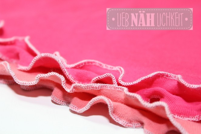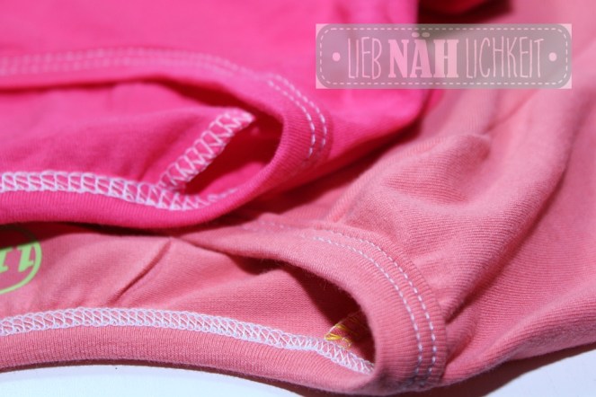 Entstanden sind zwei Raglankleidchen von Klimperklein in pink und rosa. Den Halsauschnitt habe ich mit dem Bandeinfasser gesäumt, die kurzen Ärmel und den Saum unten mit dem Pikotstich der Bernina L460 umnäht.