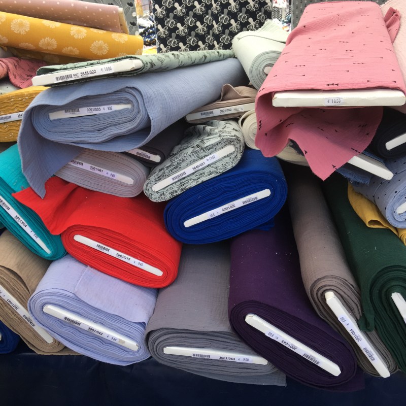 Der neuste Trend auch auf dem Stoffmarkt an jder Ecke: Musselin: unifarben für 9,00 – 9,90€…
