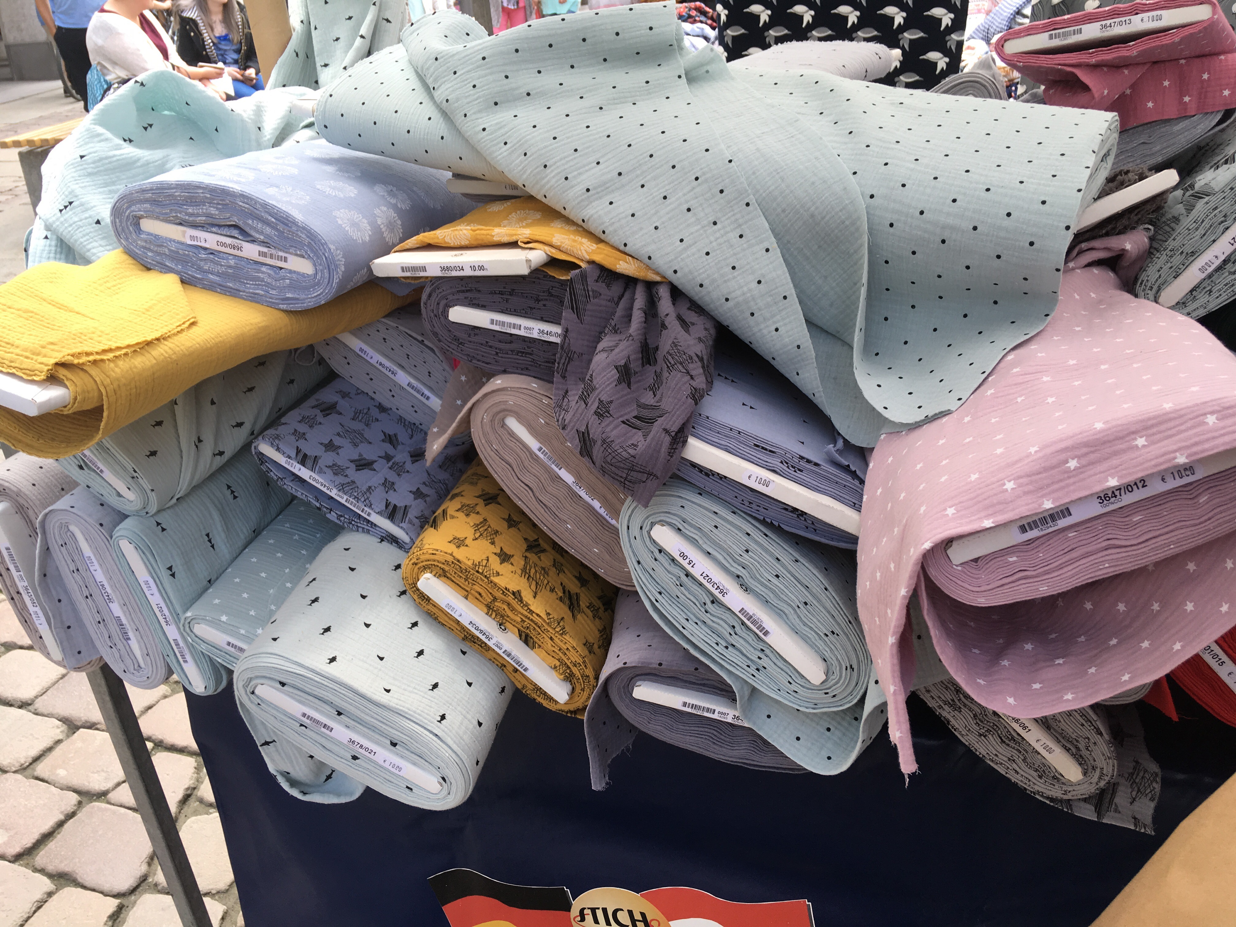 Fazit: Der große Hype ist es lange nicht mehr. Preise sind die gleichen wie im Netz, wobei es schon schön ist, wenn man mal fühlen kann, wie weich/dick/dehnbar die Stoffe sind. Aber ich habe Noon vermisst und Kathi Kunterbunt war, wie angekündigt, auch nicht zu finden…