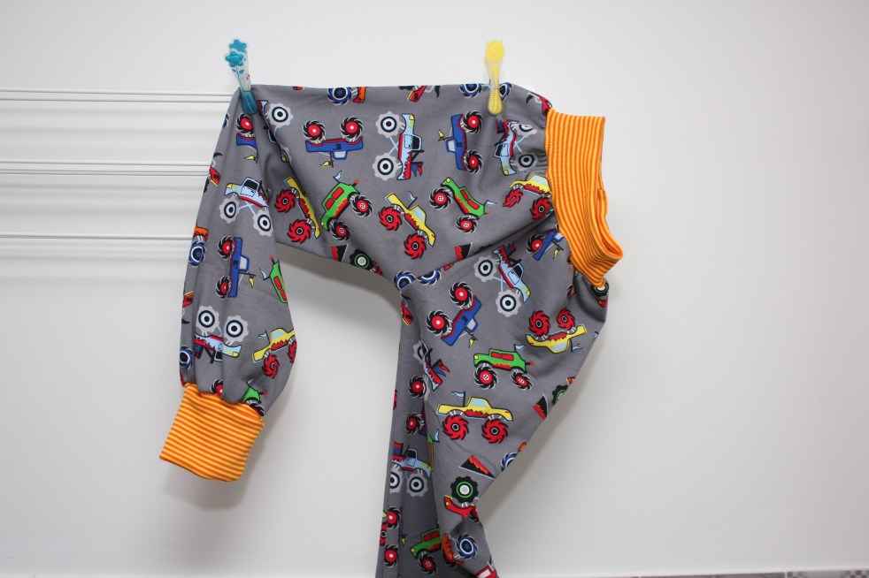 Heute ohne viel Worte. Der große Hase brauchte neue „Jogginghosen“, halt was rum rumschlumpfen zuhause. Bisher habe ich immer Interlock genäht, diesmal gibts ein paar kuschlige aus innen angerauhtem Sweat. Die Beinbündchen habe ich doppelt so lang gemacht, anfangs zum Umschlagen und später zum „Mitwachsen“. Schnittmuster: Freebook Jogging Rockers von Mamahoch2 Stoff: Sweat von Königreich…… Weiterlesen 👖 Monstertruckrockers… {Sweat-Jogging-Rockers}